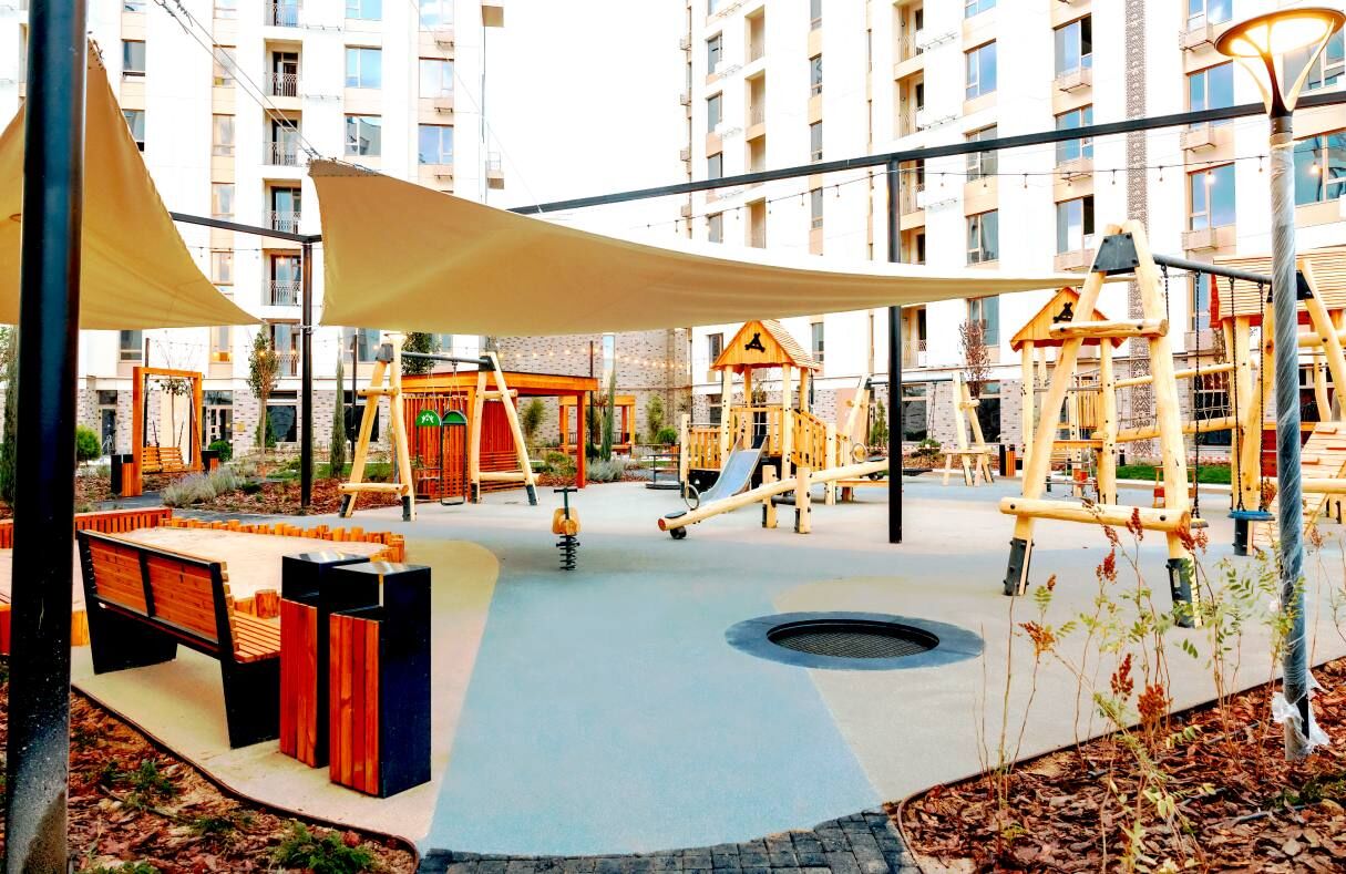 Проект BI Sad’O сочетает архитектурную эстетику, функциональность и внимание к потребностям жителей. Особое внимание уделено благоустройству внутреннего пространства. Двор закрыт для автомобилей, что делает его безопасным и комфортным для семейного отдыха. Для детей предусмотрены современные игровые площадки из качественных материалов. Зелёные зоны формируют подходящую среду для прогулок на свежем воздухе. Для общения жителей и проведения мероприятий предусмотрены амфитеатр, барбекю-зона и уютные места для пикников, а для любителей спорта оборудована воркаут-зона. Каждый элемент пространства продуман так, чтобы обеспечить баланс уединения, активности и общения.