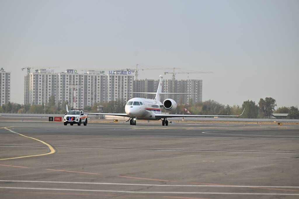 Высокого гостя в международном аэропорту Ташкента встретили премьер-министр Абдулла Арипов и другие официальные лица.
