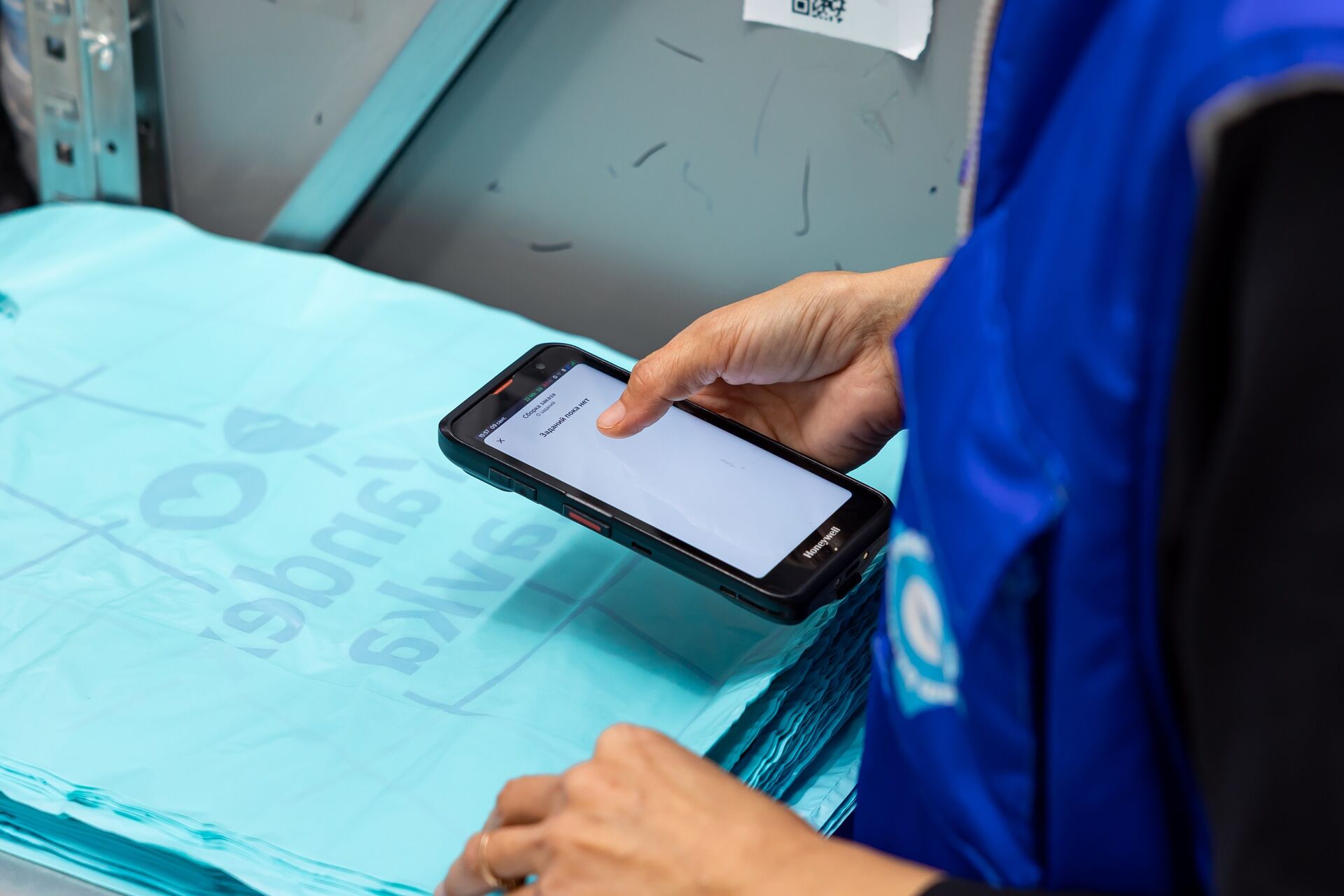 Вы выбираете продукты в приложении и нажимаете «Оформить заказ». В этот момент он появляется в терминале, которым пользуются сборщики. Всё происходит практически мгновенно: