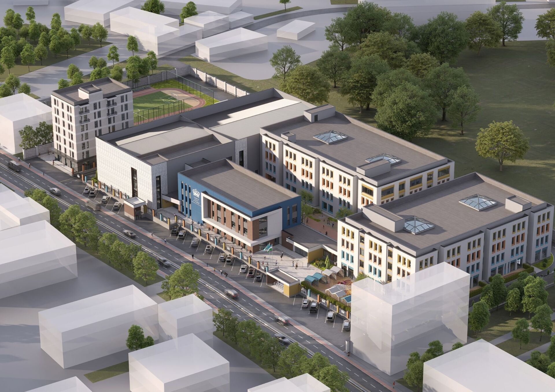 Новый кампус создаётся как пространство для креативности, благополучия и личностного роста учеников. В нём будут современные научные лаборатории, творческие студии, актовый зал, крытый бассейн, спортивные площадки, а также зелёные зоны для занятий на свежем воздухе. Каждый элемент проекта отражает стремление школы дать детям возможность раскрыть свой потенциал для достижения успеха.
