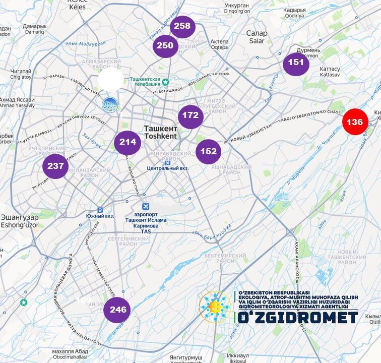 20 ноября в 09:00 автоматические станции мониторинга зафиксировали в Ташкенте повышенные показатели загрязнения воздуха.