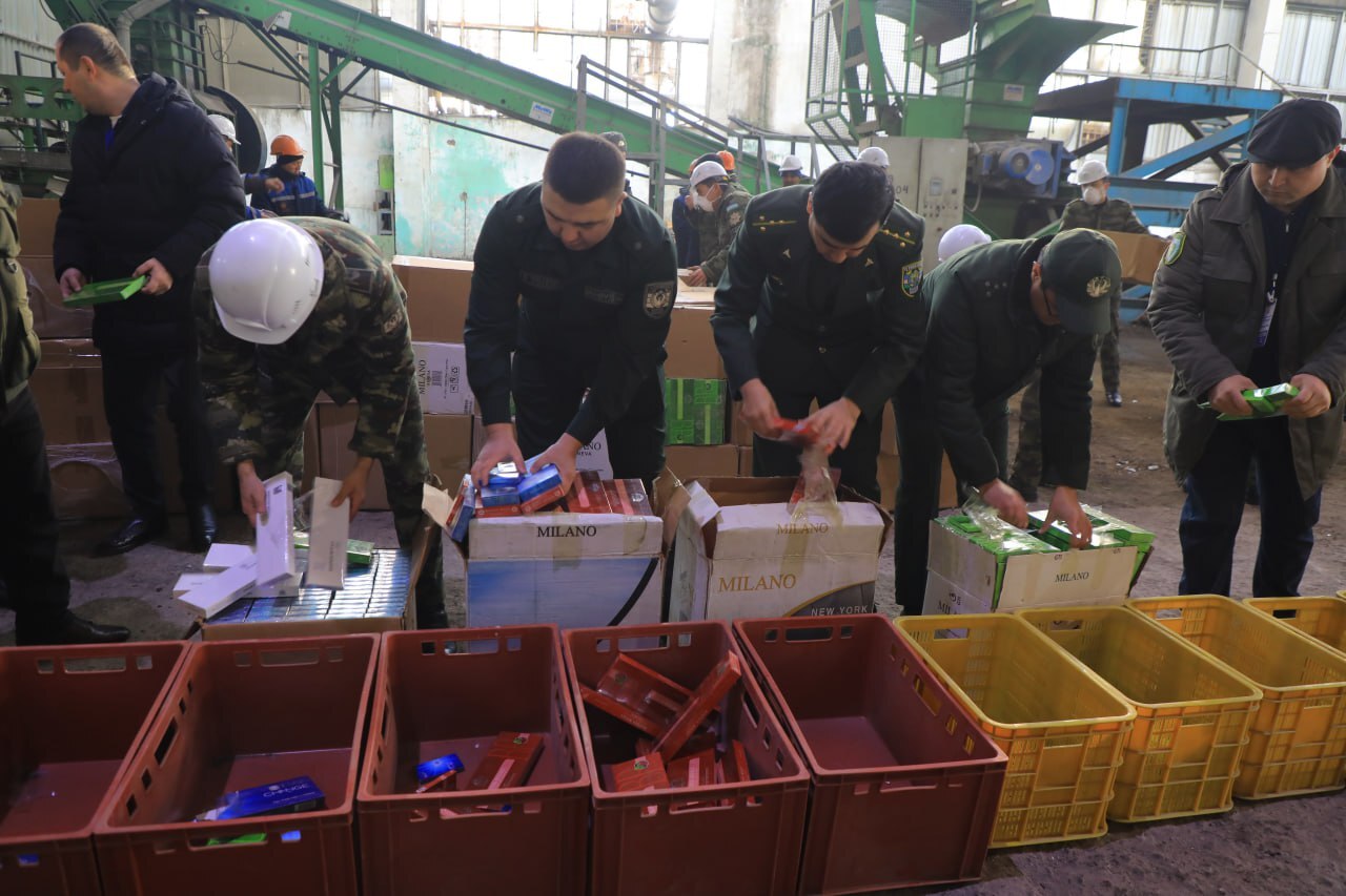 Уничтоженная продукция оценивается в 9 млрд 800 млн сумов. Она не была промаркирована цифровыми кодами и акцизными марками РУз, а на упаковке отсутствовали предупреждения на государственном языке о вреде табачных изделий для здоровья человека.