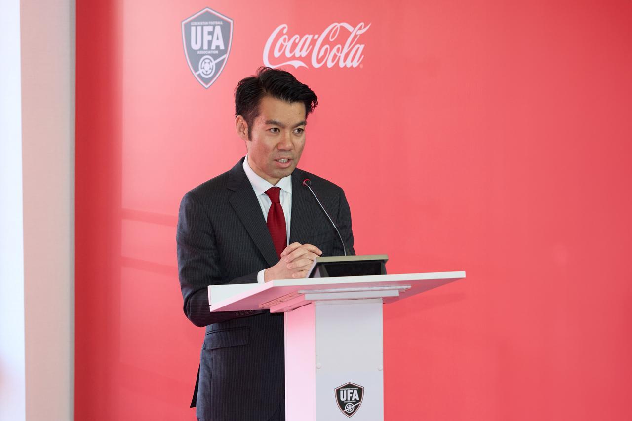 Генеральный директор Coca-Cola в Узбекистане Казумаса Мукаэ в своей речи связал новое соглашение не только со спортом, но и с национальным настроением вокруг футбола.