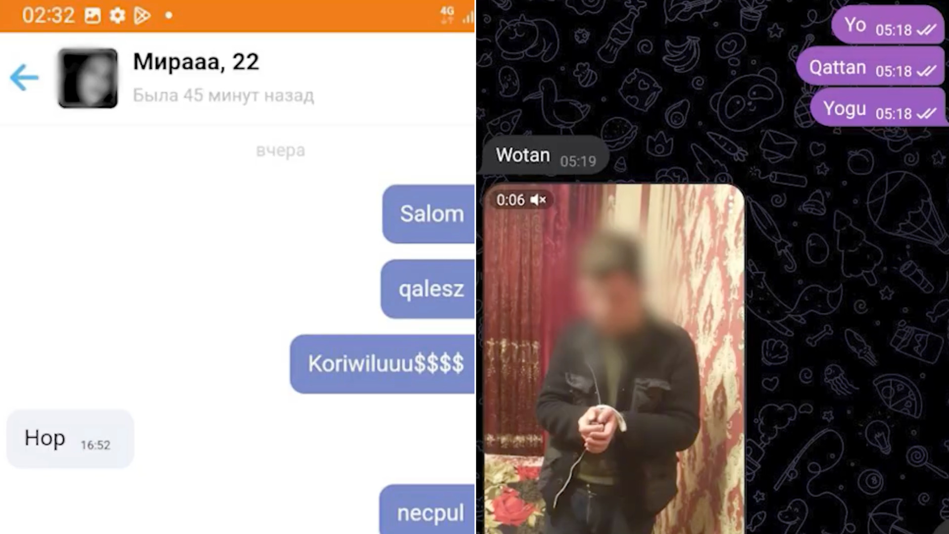 После того как потерпевший заходил в дом, участники группы, называемые спортсменами, оскорбляли его, утверждая, что он пришёл для противоправных действий, избивали, угрожали и снимали происходящее на видео, требуя 10 млн сумов.