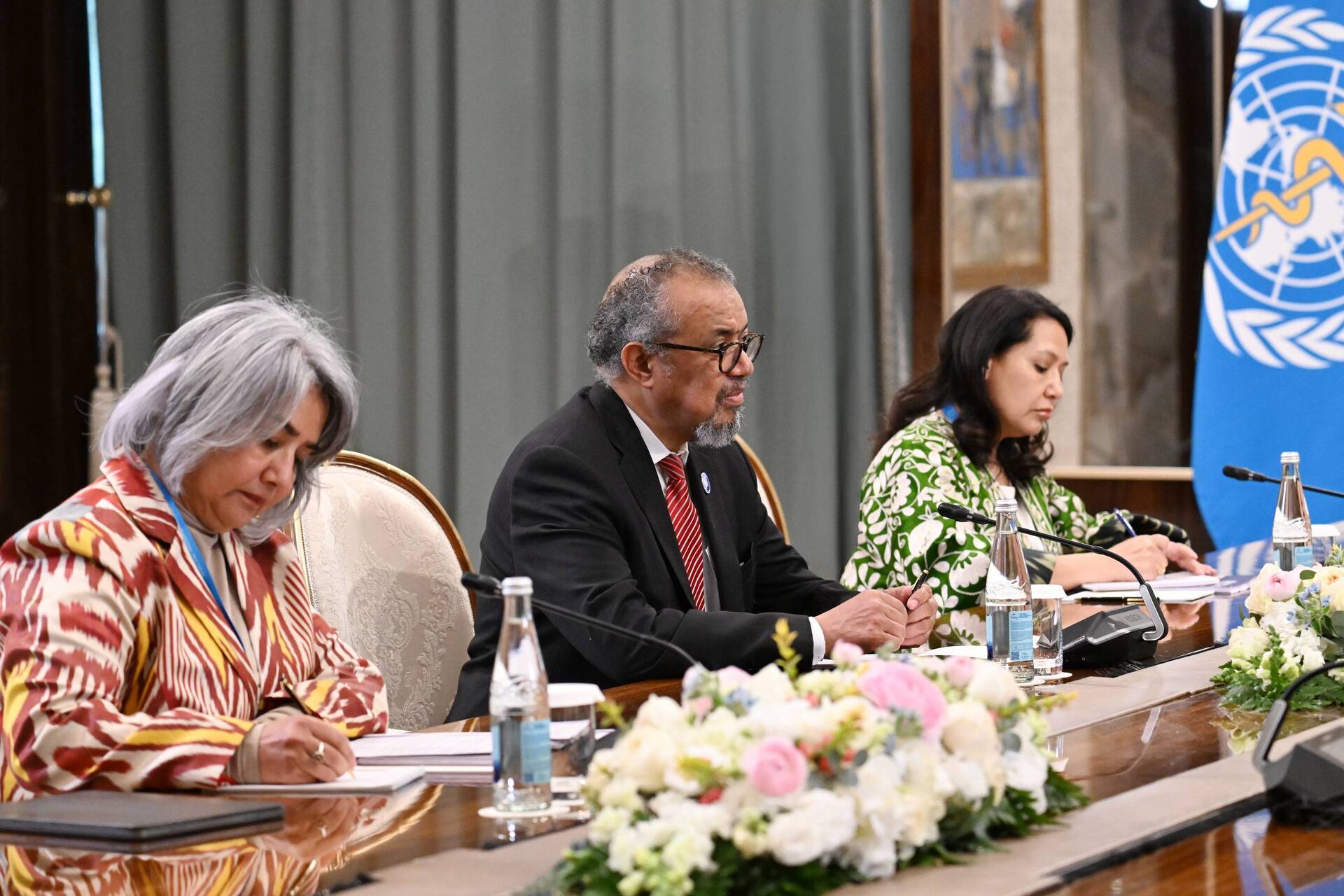 В рамках международного форума по противодействию наркоугрозам, проходящего в Самарканде, Саида Мирзиёева встретилась с генеральным директором Всемирной организации здравоохранения Тедросом Адханомом Гебрейесусом. Об этом глава Администрации президента сообщила в своём Telegram-канале.