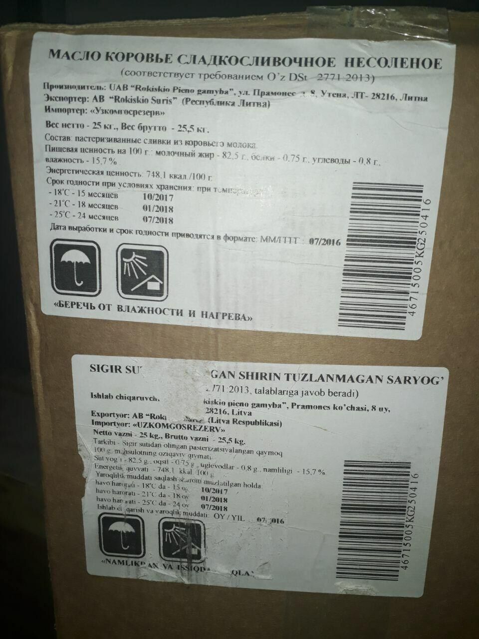 В результате вышеуказанных оперативных мероприятий изъято 23 625 кг просроченного сливочного масла на сумму 1,3 млрд. сумов.