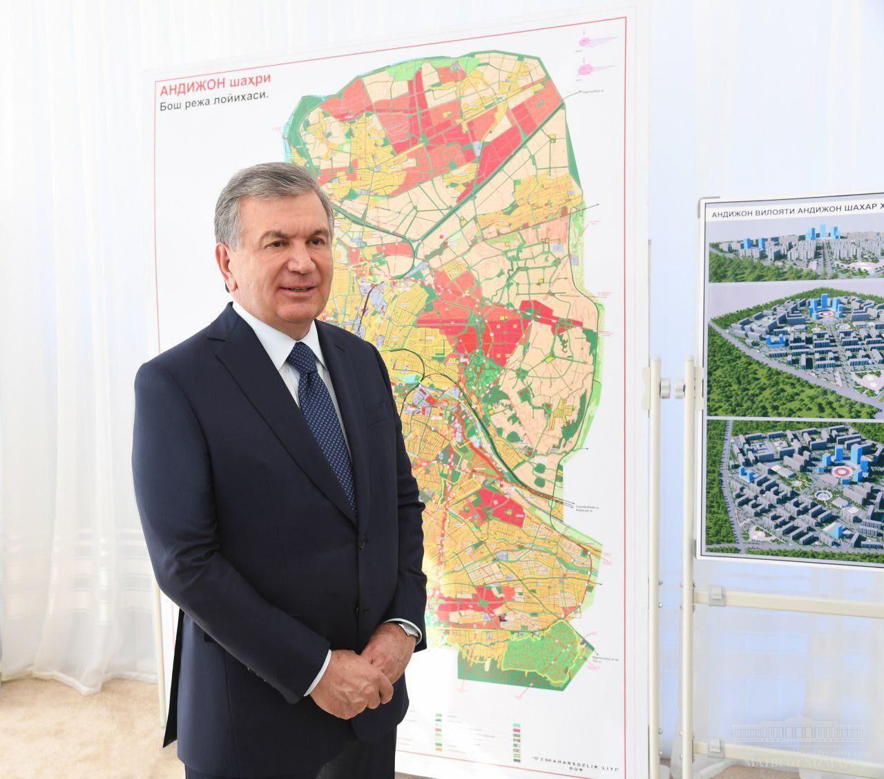 Главе государства представлена информация о проектах в рамках генерального плана города Андижана, предложениях по строительству 150 многоквартирных домов и коттеджей типа "таунхаус" в 2019-2020 годах.