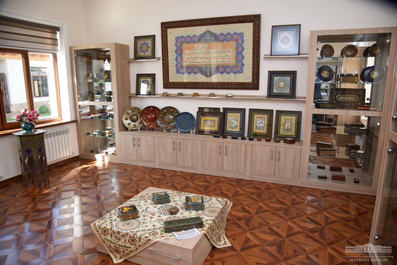 Президент ушбу уйларни, ёғоч қирмачилик ва хаттотлик устахоналарини кириб кўрган.