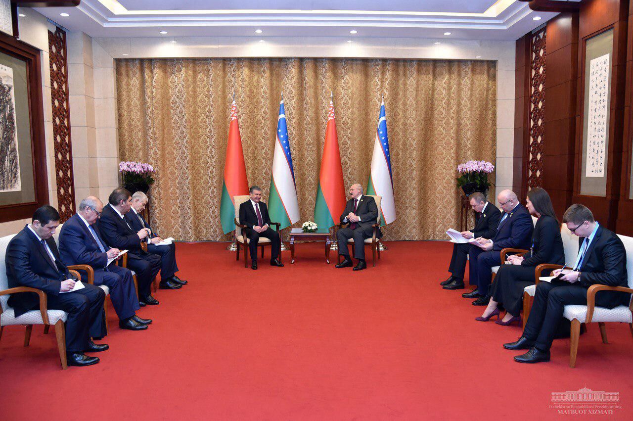 25 апреля в рамках международного форума «Один пояс, один путь» Шавкат Мирзиёев и Александр Лукашенко обсудили возможность обмена технологическими процессами, сообщает пресс-служба Президента Беларуси.
