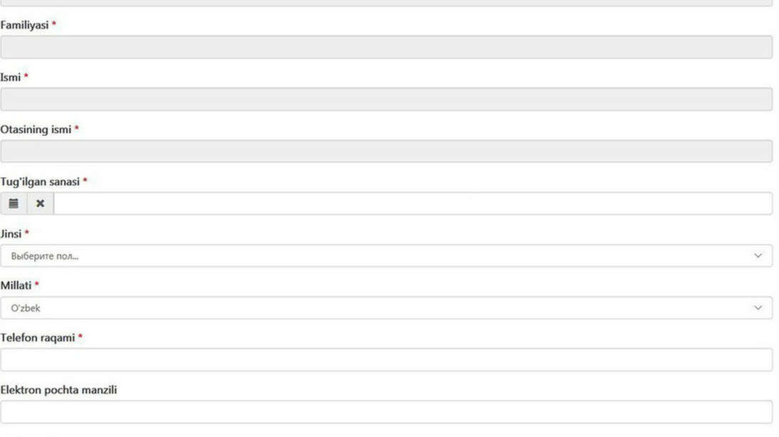 1-қадам. Паспорт, яшаш манзили, телефон маълумотларини тўлдириш.