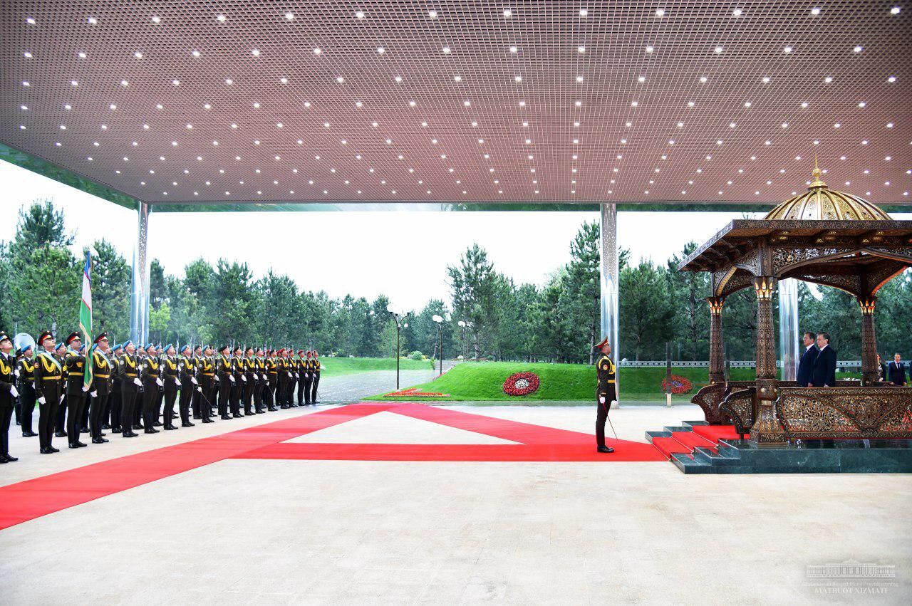 19 апреля в резиденции Куксарой состоялась церемония официальной встречи высокого гостя. Главы государств поднялись на трибуну. Прозвучали государственные гимны Республики Узбекистан и Республики Корея. Президенты обошли строй почетного караула.