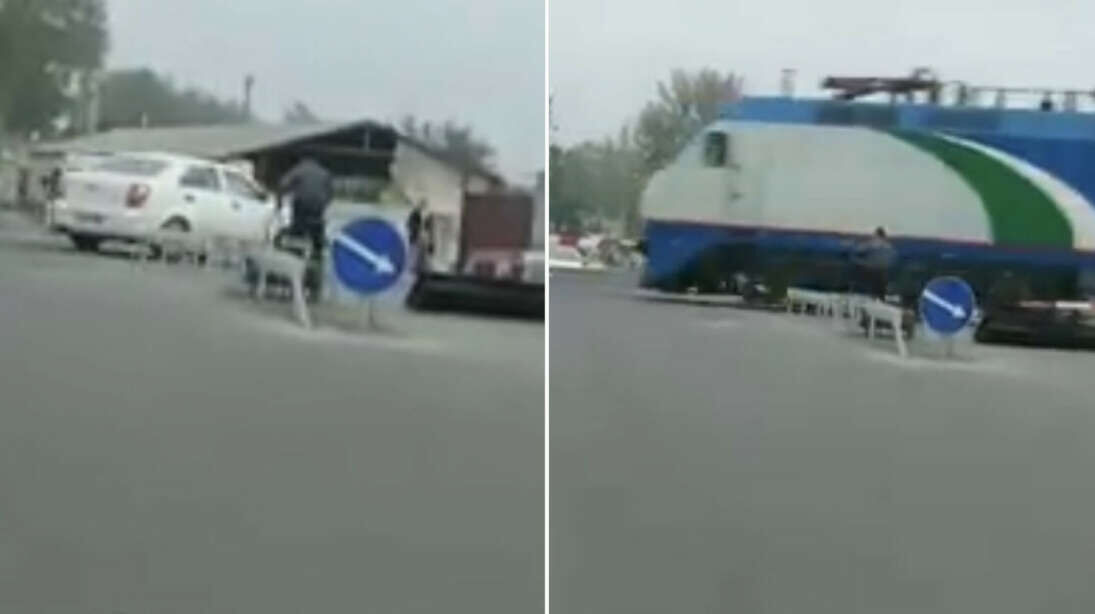 На железнодорожном переезде в г.Коканд Ферганской области пассажирский поезд чуть не протаранил автомобиль.