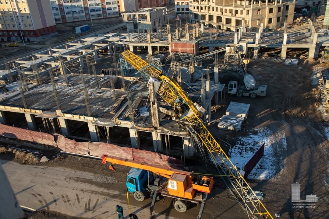 Сегодня, 26 января, в 16:00 часов на строительной площадке многоэтажного дома в махалле «Ёшлик» города Навои обрушился подъемный кран. Об этом сообщили в пресс-службе областного хокимията.