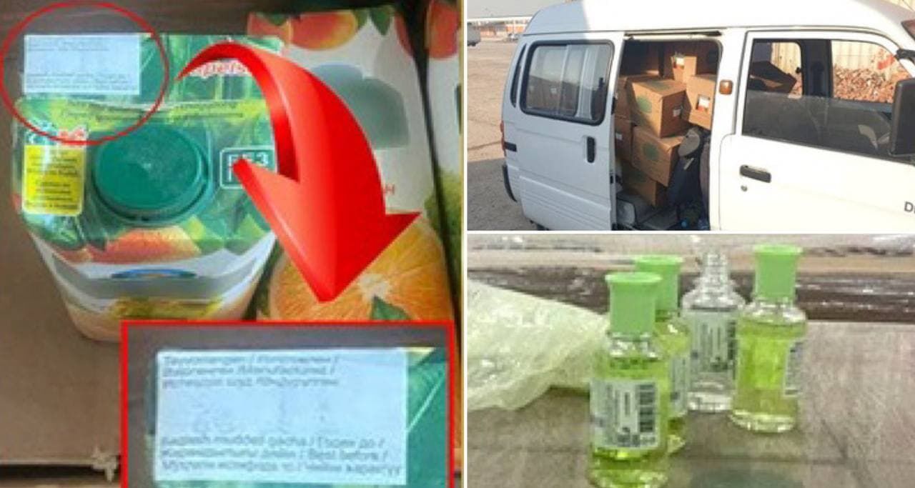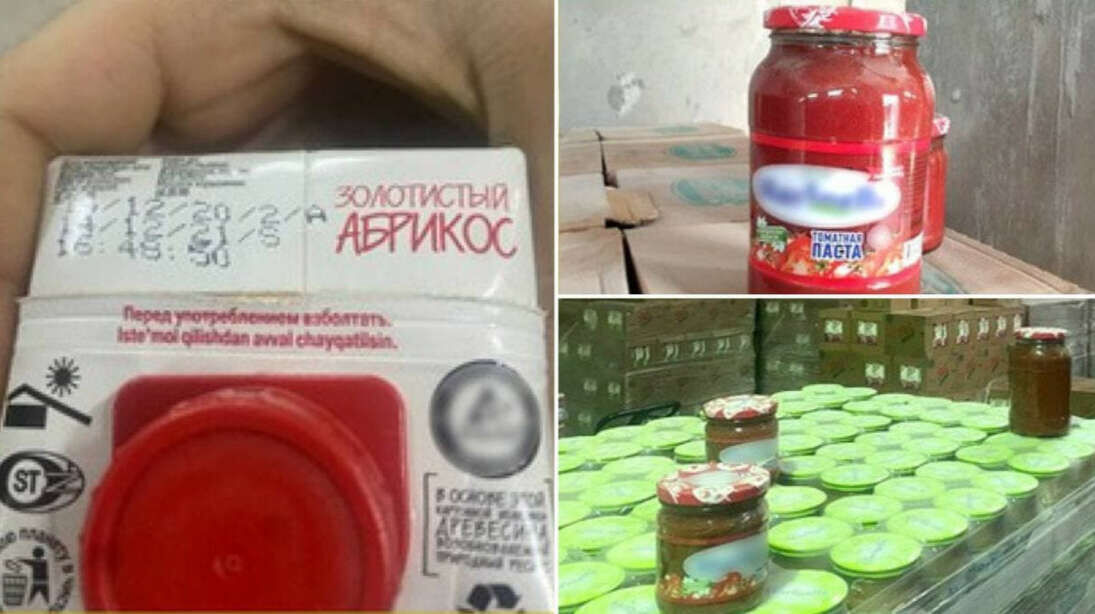 В качестве вещественных доказательств были изъяты соки Bliss, «Сочная долина», Meva, напитки Coca-Cola, Fanta, Sprite, томатная паста Marinelle, консервы с растительной икрой, ананасом, кукурузой, ассорти, кабачковой икрой, сгущенное молоко под торговыми знаками «Деревенская», «Молоко с сахаром», чаи «Американ теа», «Вестон теа», «Араб теа», «Тошкент чой», а также ацетон, используемый для удаления надписи о сроке годности.