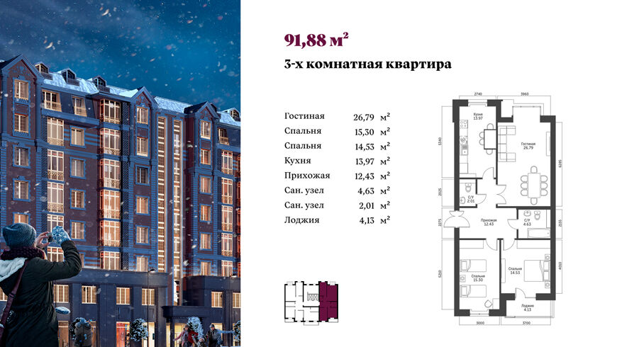 Трёхкомнатную квартиру с большой площадью 91 кв. м — с первоначальным взносом в размере 380 млн сум. Вдобавок ко всему, клиенты при этом становятся участниками невероятной акции с возможностью выиграть электрокар Tesla Model 3.