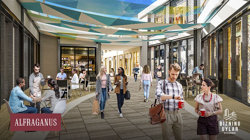 Масштаб и нестандартный формат Alfraganus смогут удовлетворить самых взыскательных клиентов. Живописные зеленые улочки с одно- и двухэтажными строениями в стиле восточного базара привлекут огромный ежедневный поток посетителей. Возможность круглый год сочетать прогулки под открытым небом с качественным шопингом или праздным досугом – одно из важнейших преимуществ нового центра. Alfraganus – это место для всех и для каждого. Неважно, сколько вам лет, какова цель вашего визита: Alfraganus не оставит вас равнодушным и подарит приятное ощущение праздника жизни.