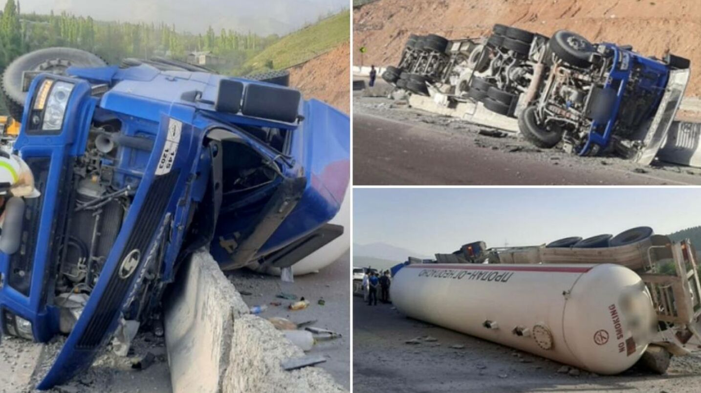 Под Ташкентом перевернулась фура с пропаном, водитель погиб