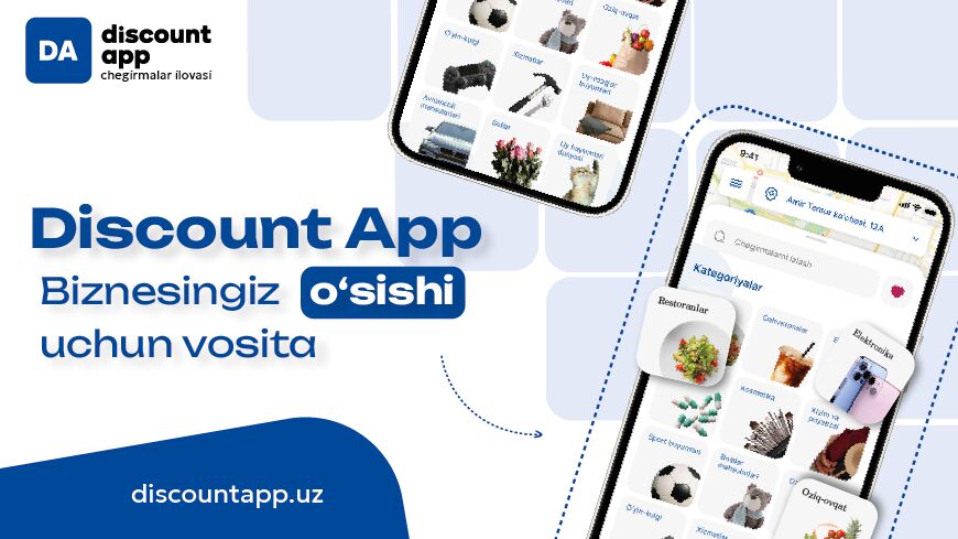 DA (Discount App) платформаси орқали кичик ва ўрта бизнес субъектлари рақобатбардошлигини ошириш имкониятига эга бўлади. Ҳамкор сифатида қўшилиш учун рўйхатдан ўтиш ва таклифларни жойлаштиришнинг ўзи етарли.