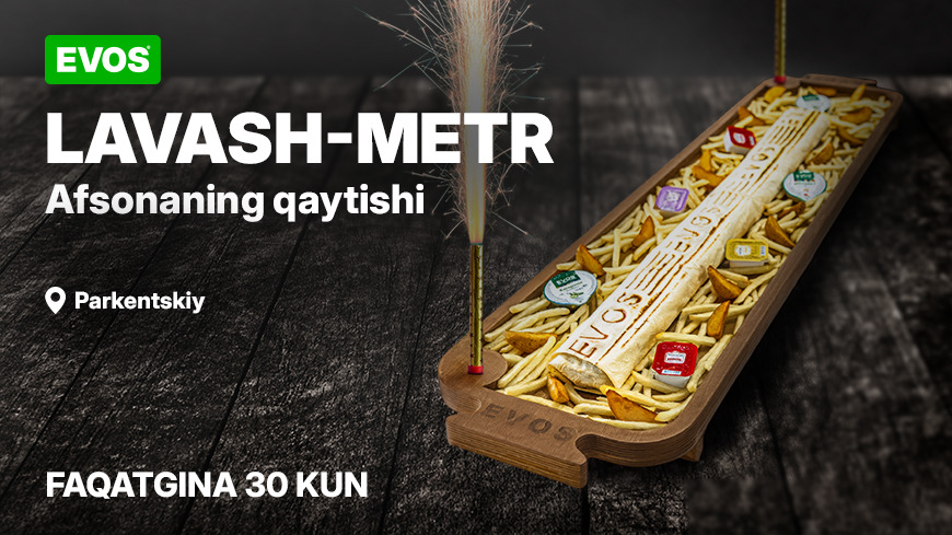 Таомномада биринчи маротаба 2017 йилда пайдо бўлган бир метрли лаваш EVOS нинг Паркент бозори филиалида меҳмонлар учун аллақачон сотувда.