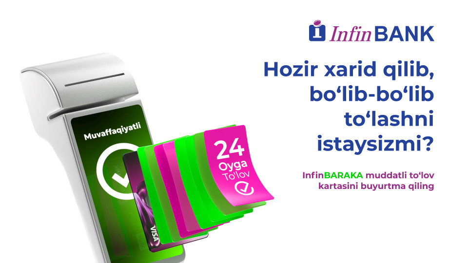 InfinBANK ҳамкор-дўконларга боғланмаган ҳолда харидларни амалга ошириш ва 24 ойлик қулай бўлиб тўлаш имконини берадиган янгиланган InfinBaraka муддатли тўлов картасини тақдим этди.