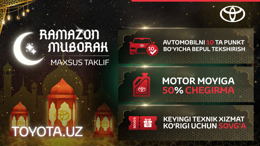 Рамазон даврида кўплаб оилалар яқинлари ва қадрдонлари ҳузурига сафарларни кўпайтириши боис, автомобилнинг техник ҳолати йўл ҳаракати хавфсизлиги ва ишончлиликнинг муҳим омилига айланади. Янги сервис кампанияси мижозларни қўллаб-қувватлаш, шунингдек, Toyota автомобилларидан фойдаланишда қўшимча қулайлик ва хотиржамликни таъминлашга қаратилган.