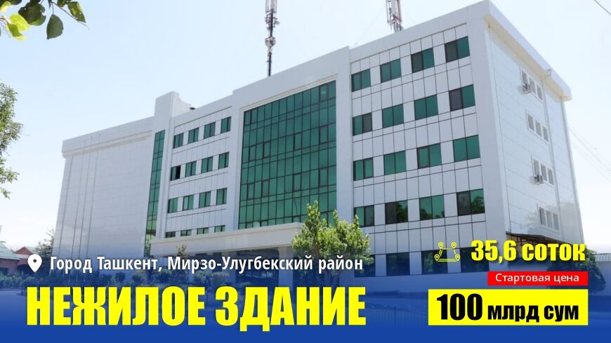 Начальная стоимость данного объекта, общей площадью 5 000 кв. метров и земельным участком площадью 35 соток, оснащённого всеми инженерными коммуникациями и собственной автостоянкой, установлена в размере 100 миллиардов 273 миллиона сумов.