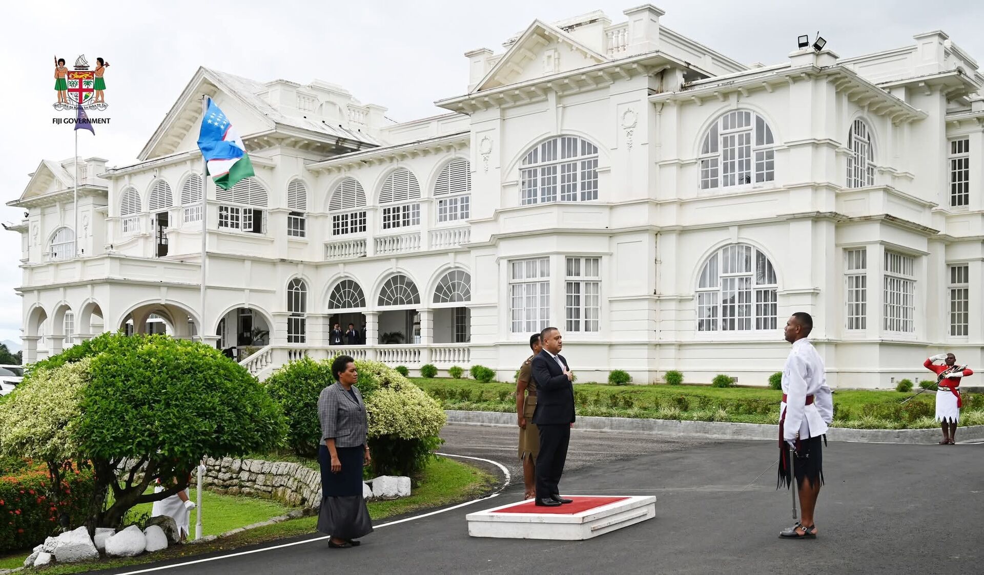 В ходе церемонии был выстроен почётный караул, прозвучал гимн Узбекистана и впервые в истории в президентском дворце в Суве был поднят флаг Узбекистана.