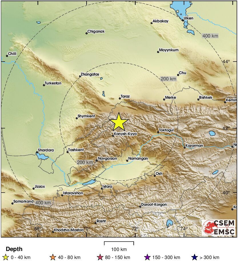 Магнитуда – 5,7, глубина – 10 км. Расстояние от эпицентра до Ташкента – 199 км в северо-восточном направлении.