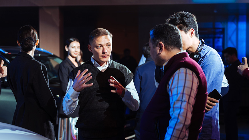 Презентация прошла в динамичном формате. Интерактивные зоны, фотозона Bullet Time и музыкальное сопровождение создавали живую, современную атмосферу. После приветственного слова ведущего и демонстрации интро-ролика на главном экране с обращением выступил директор бренда Kia Георгий Шония.