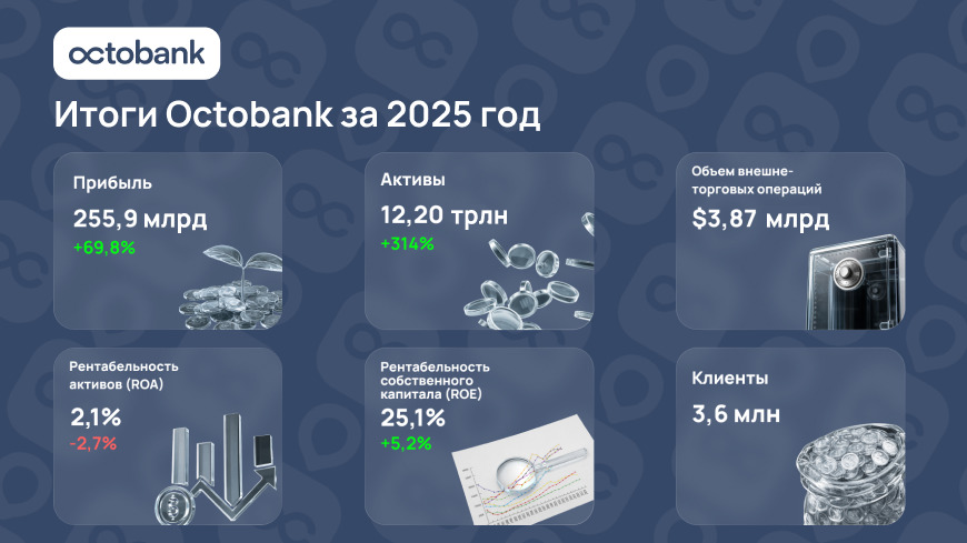 В 2025 году Octobank достиг рекордной прибыли свыше 255,9 млрд сумов, вошёл в ТОП-3 малых банков рейтинга ЦЭИР, а также внедрил новые цифровые решения. В Octo-Mobile теперь доступны Alipay+ и инвестиции через платформу JETT, а в метро — оплата ладонью MyID Palm.
