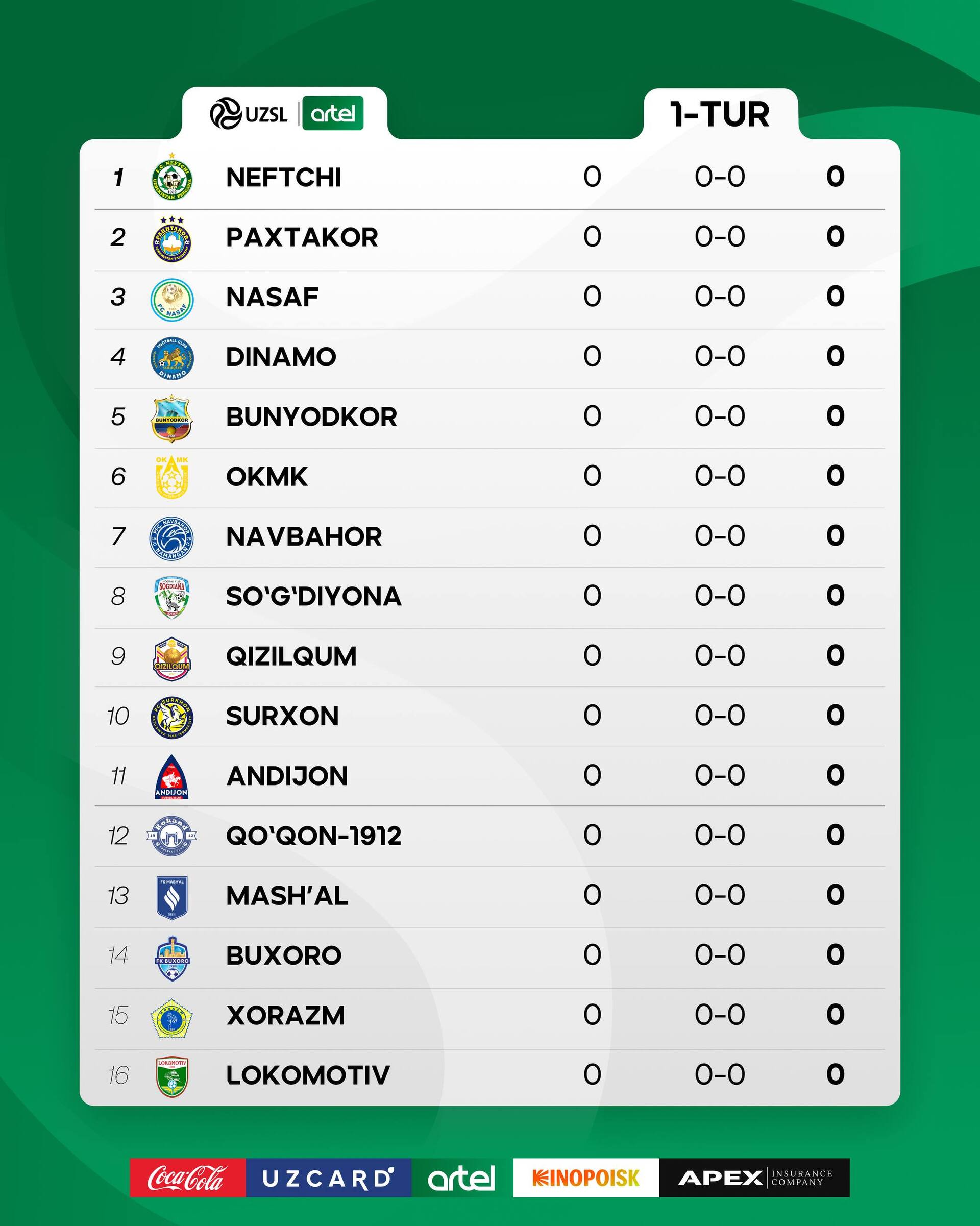 Первая игра пройдёт на стадионе Ассоциации футбола Бухары, где «Бухара» примет «Коканд-1912». Начало матча — в 18:00.