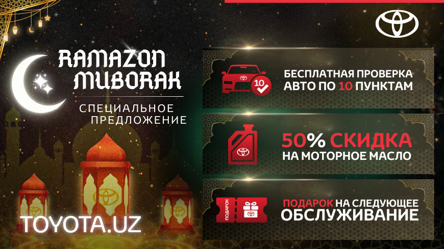 Акция проводится ограниченное время во всех официальных сервисных центрах дилерской сети Toyota в Узбекистане.