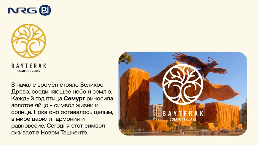 Именно в такой локации особенно важен выбор девелопера. Bayterak реализуется компанией NRG-BI — одним из наиболее динамично развивающихся игроков рынка недвижимости Узбекистана.