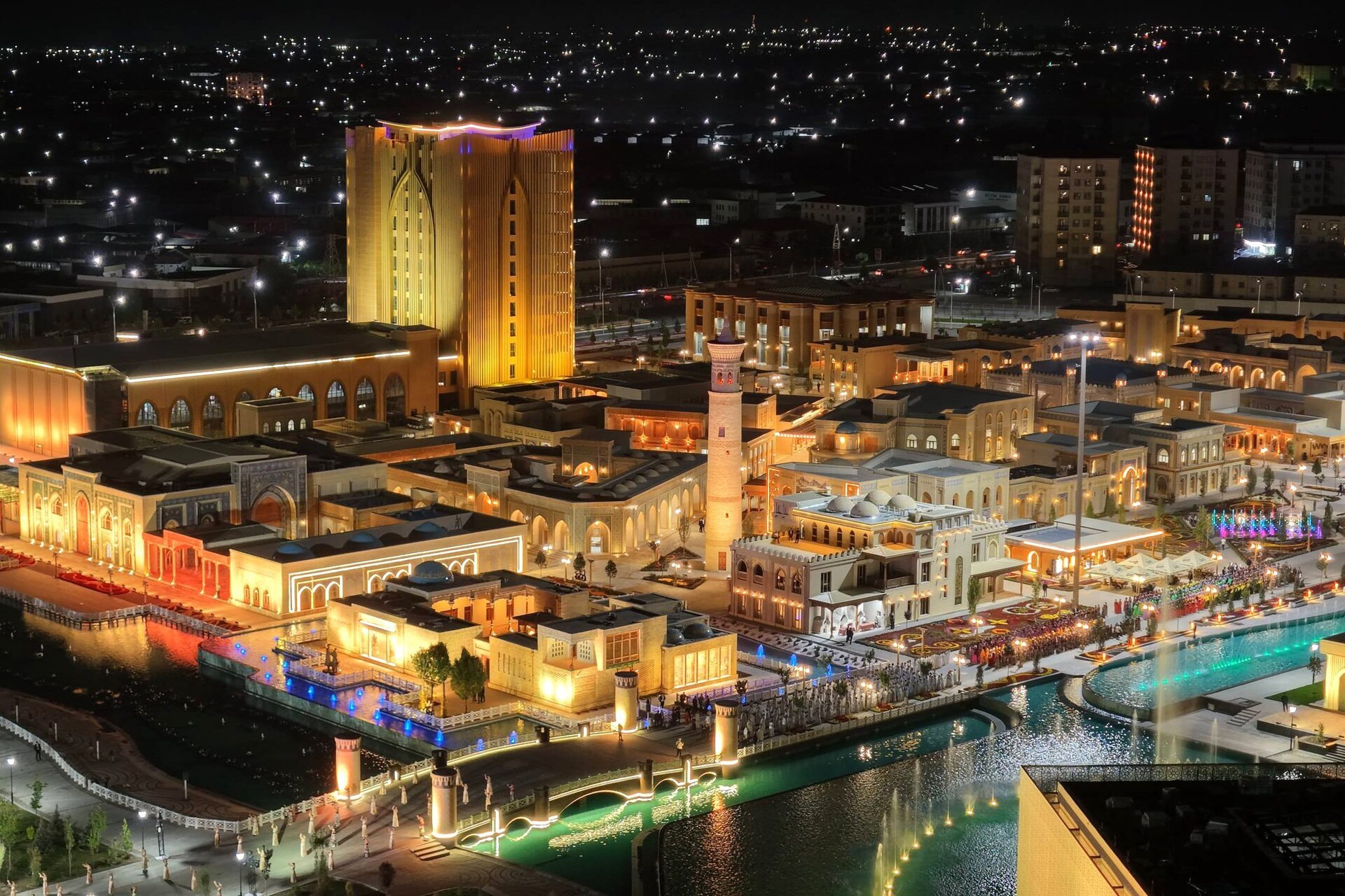 В комплексе, занимающем 35 гектаров, завершено строительство гостиницы, караван-сарая, зданий торговли и обслуживания, центра ремесленников, национального базара и музея.