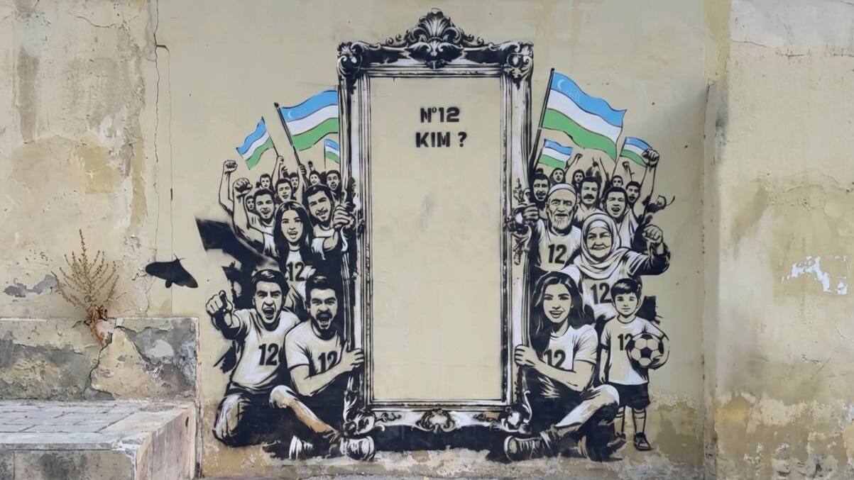 На свежем граффити нарисованы фанаты, в руках у которых зеркало с кратким вопросом: «Кто №12?».