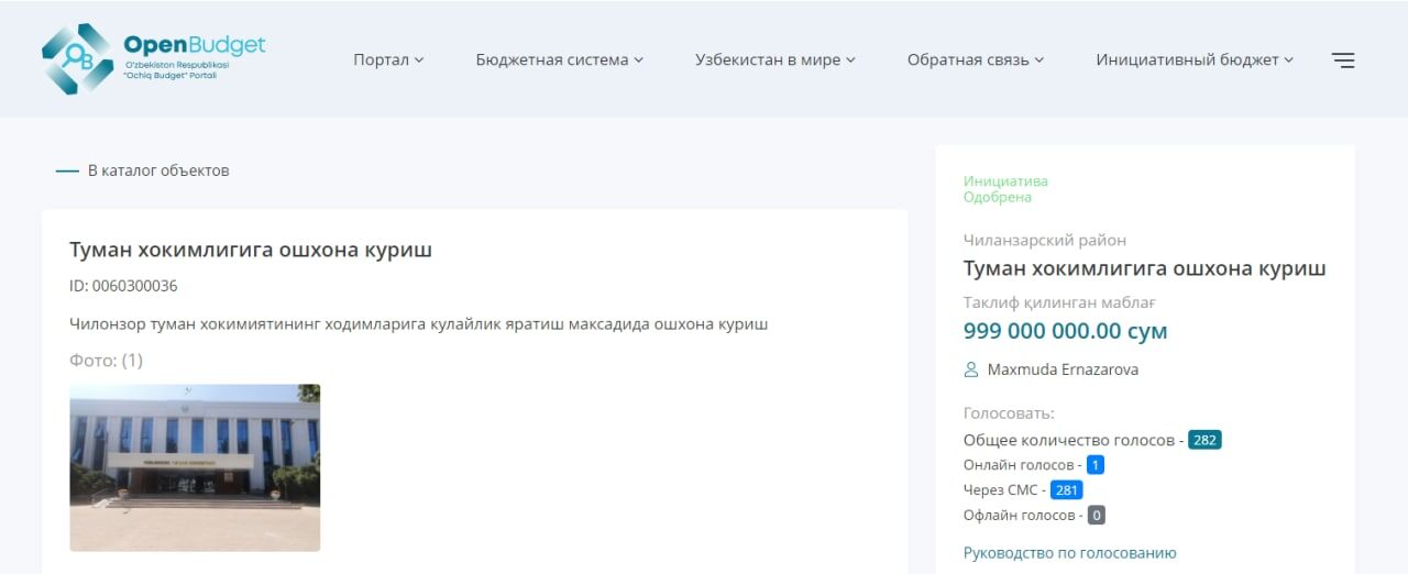 Унга кўра, “Ташаббусли бюджет” порталида қайсидир ташаббус энг кўп овоз олгани, лойиҳа албатта молиялаштирилишини англатмайди. Ишчи гуруҳлар томонидан ғолиб бўлган лойиҳалар тегишли талабларга тўғри келиши қайта кўриб чиқилади.