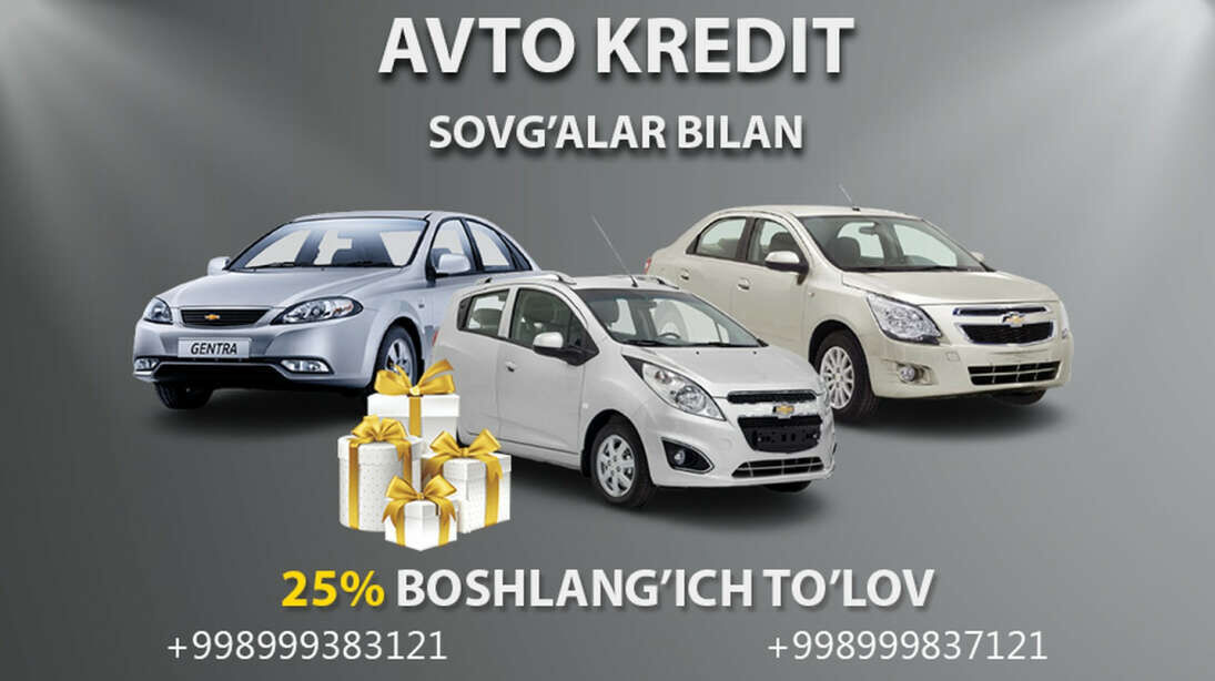 Автокредит банк орқали берилади. Автомобиль сизнинг номингизга расмийлаштирилади.
