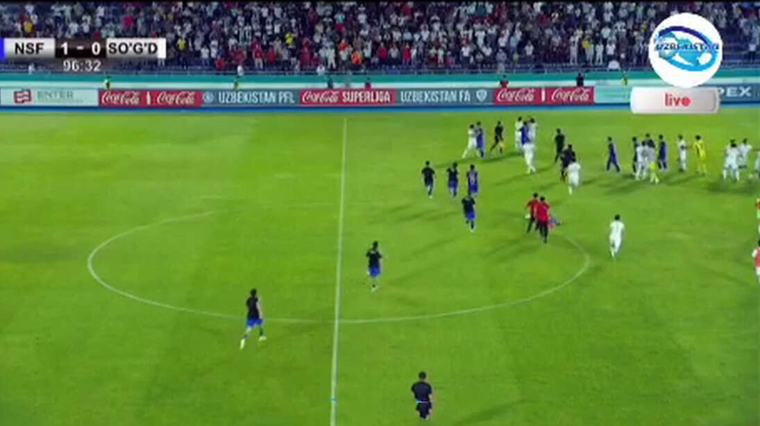 После этого инцидента обстановка на футбольном поле накалилась. Как результат, один из игроков команды «Сугдиёна» ударил каршинского футболиста по ногам, грубо нарушив правила игры. Завязалась драка, после которой судьи удалили с поля трех игроков.
