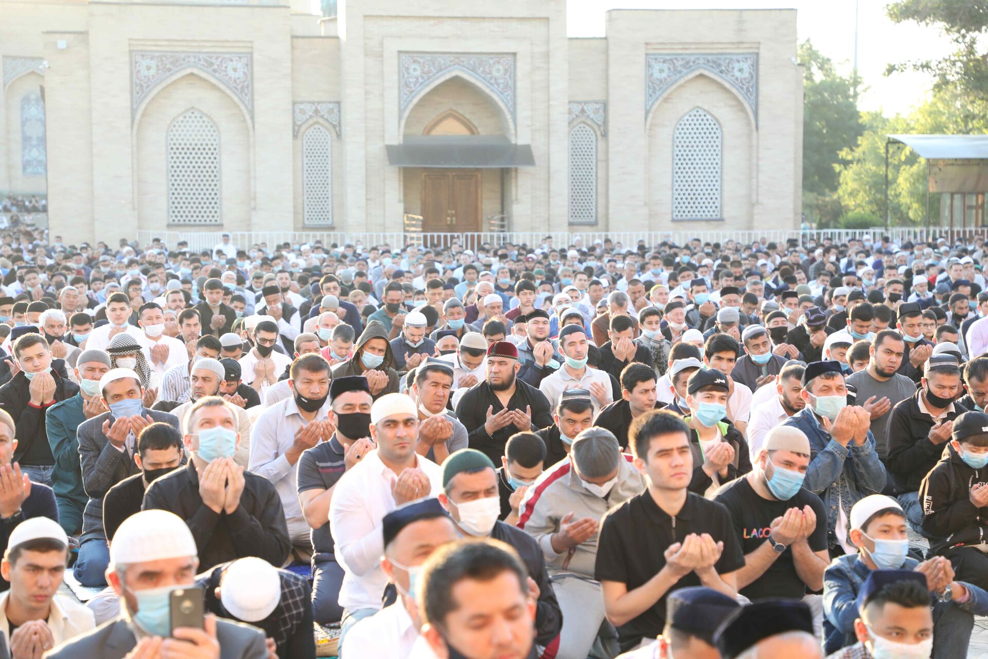В центральной мечети Хаст-Имам в столице на молитву собрались десятки тысяч человек, сообщила пресс-служба Управления мусульман Узбекистана.