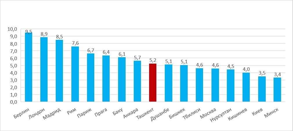 Тошкент ва бошқа мамлакатлар пойтахтлари супермаркетларидаги нархларнинг қиёсий таҳлили: