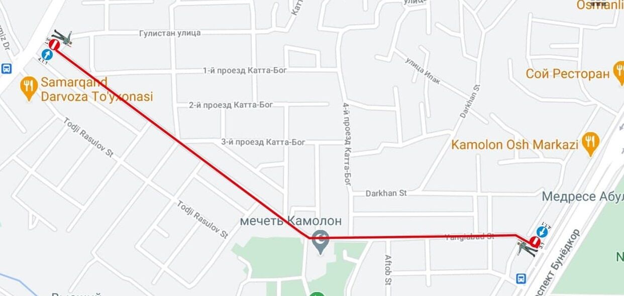 В связи с проведением вечерних молитв в период священного месяца Рамадан ежедневно на время с 18.00 до 23.00 часов следующие дороги возле мечетей будут закрываться для движения транспортных средств: