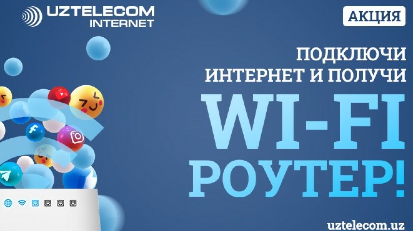 Станьте абонентом UZTELECOM, подключайтесь к высокоскоростным тарифам и получите Wi-Fi роутер.