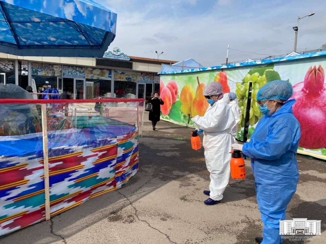 Кроме того, совместно с сотрудниками ответственных ведомств налажено проведение дезинфекционных работ на рынках и в торговых центрах.