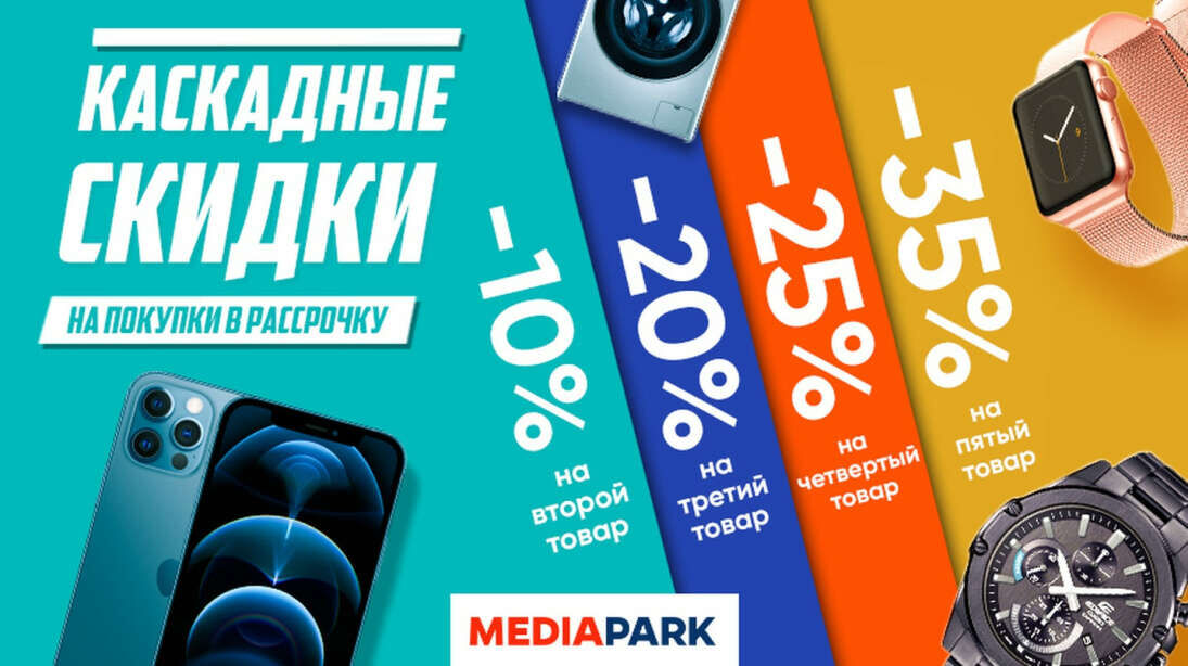 А теперь самое горячее предложение этой зимы! Только с 1-го по 15-ое февраля в филиалах MEDIAPARK и в интернет-магазине MEDIAPARK.UZ действует акция «Каскадные скидки». Больше товаров – больше скидка*!