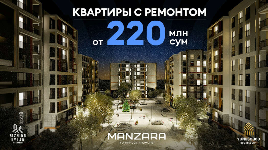 Компания Bizning Uylar Development ориентирована на реализацию современного, качественного и доступного жилья. И предновогодняя пора полна выгодных предложений. Жилой комплекс Manzara предлагает не откладывать приобретение недвижимости, ведь стоимость начинается от 220 млн сум и все квартиры поступают в продажу с готовым ремонтом.