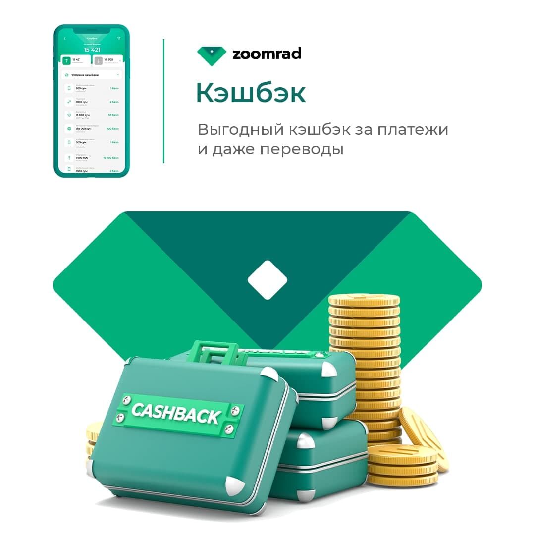 Картадан картага пул ўтказганда фақатгина Zoomrad иловасида кэшбэк олиш мумкин. Шу билан бир қаторда, кэшбэк ва бонуслар тўловларни амалга оширганда фойдаланувчи картасига ўтказилади.