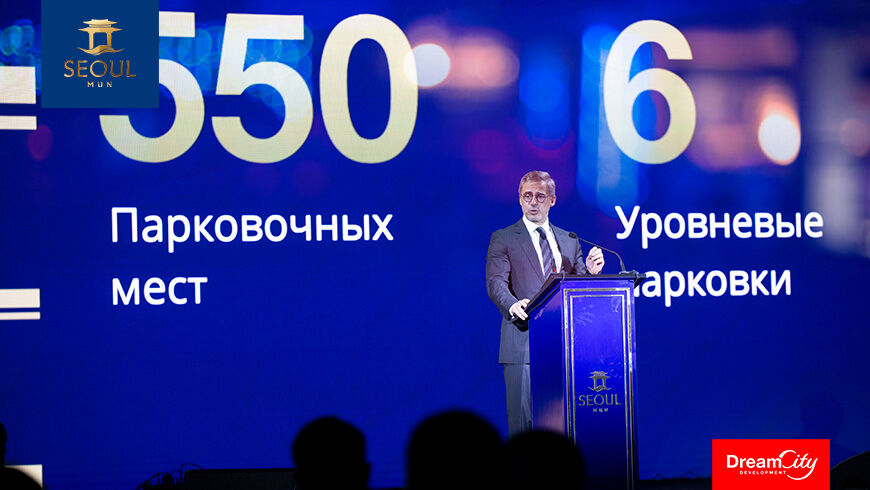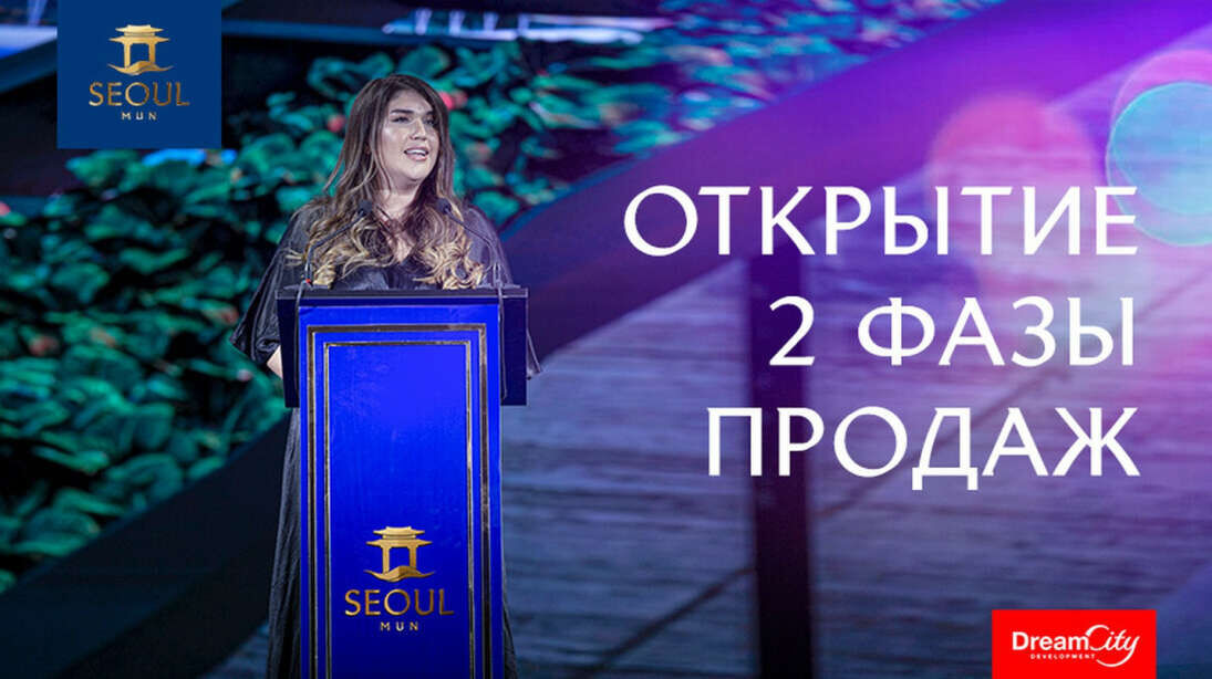 Вечер начался с выступления заместителя руководителя отдела продаж компании Dream City Development Дениз Бахчечи. Она познакомила присутствующих с историей компании, ее успехами, достижениями и реализуемыми проектами. В конце речи госпожа Бахчечи торжественно объявила старт новой фазы продаж проекта Seoul Mun. С 23 октября в продажу выходят коммерческие помещения, расположенные вдоль дороги, на северном побережье канала Бурджар.