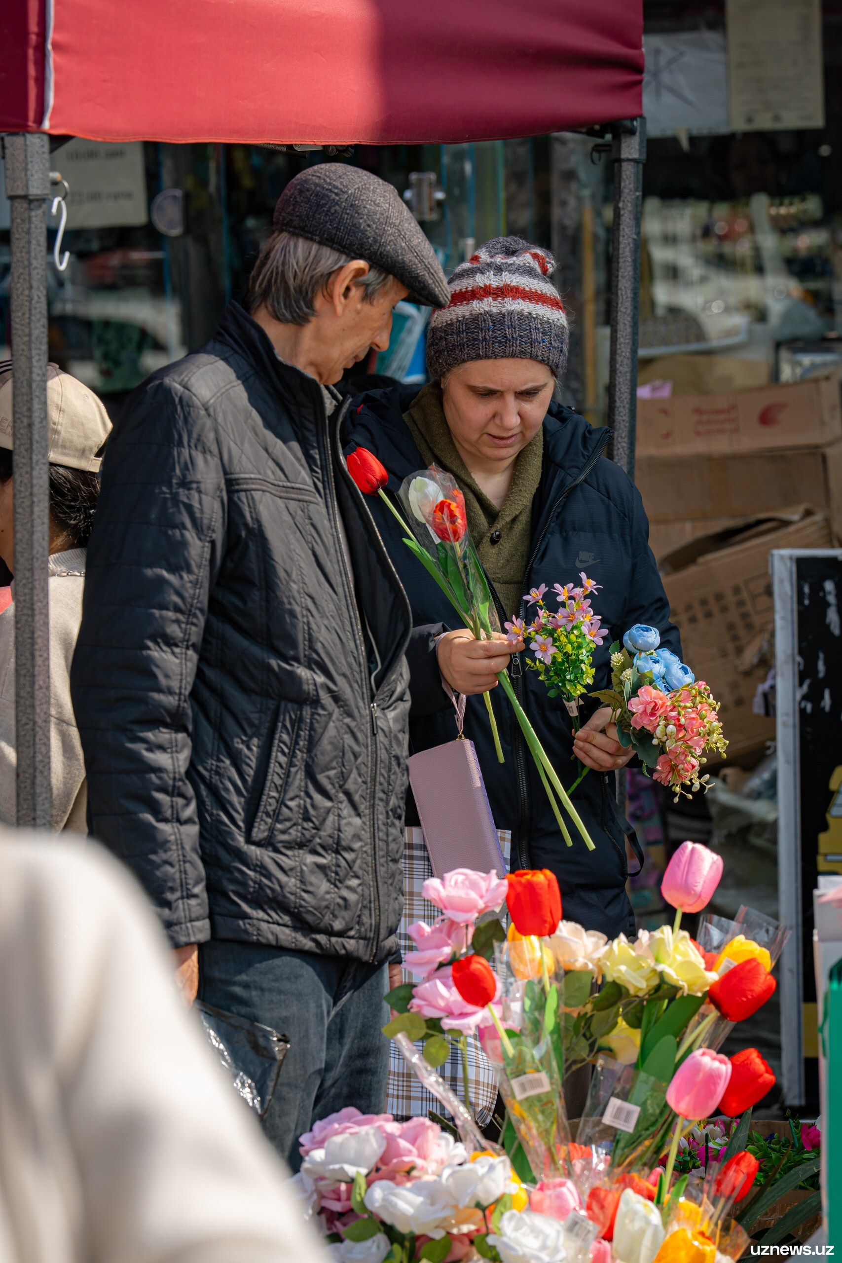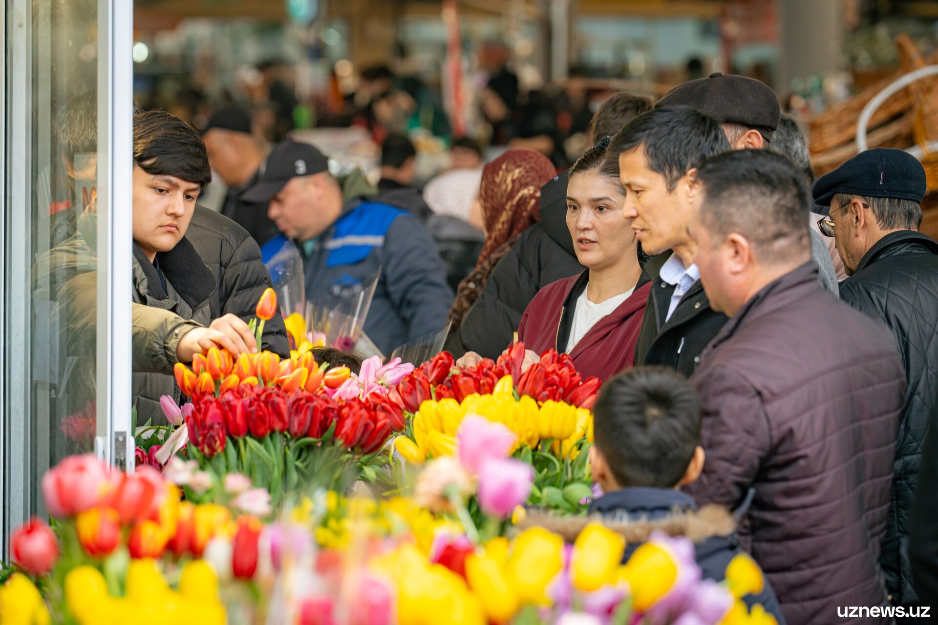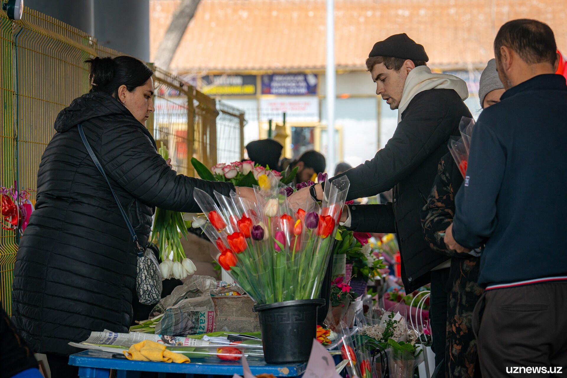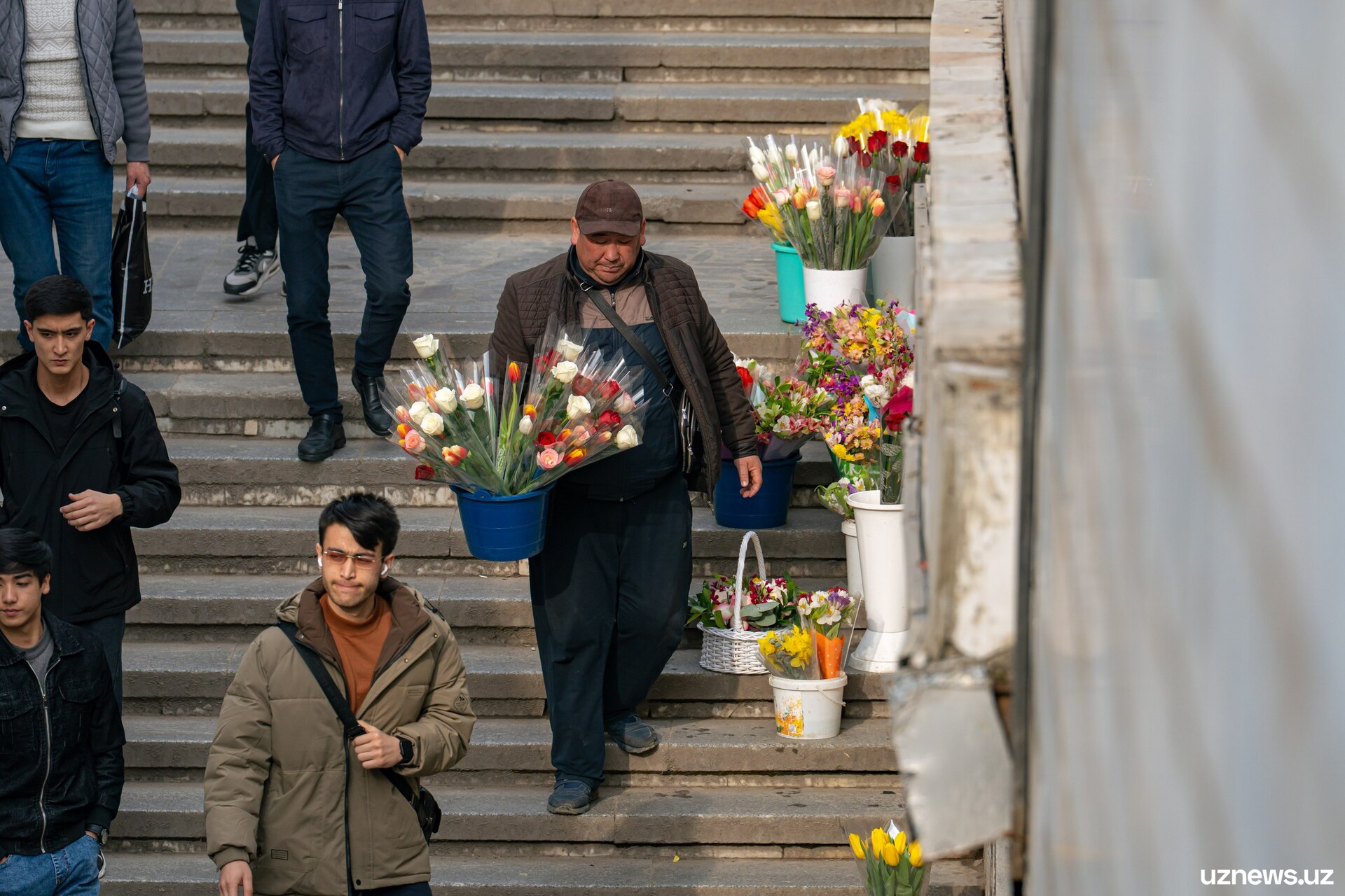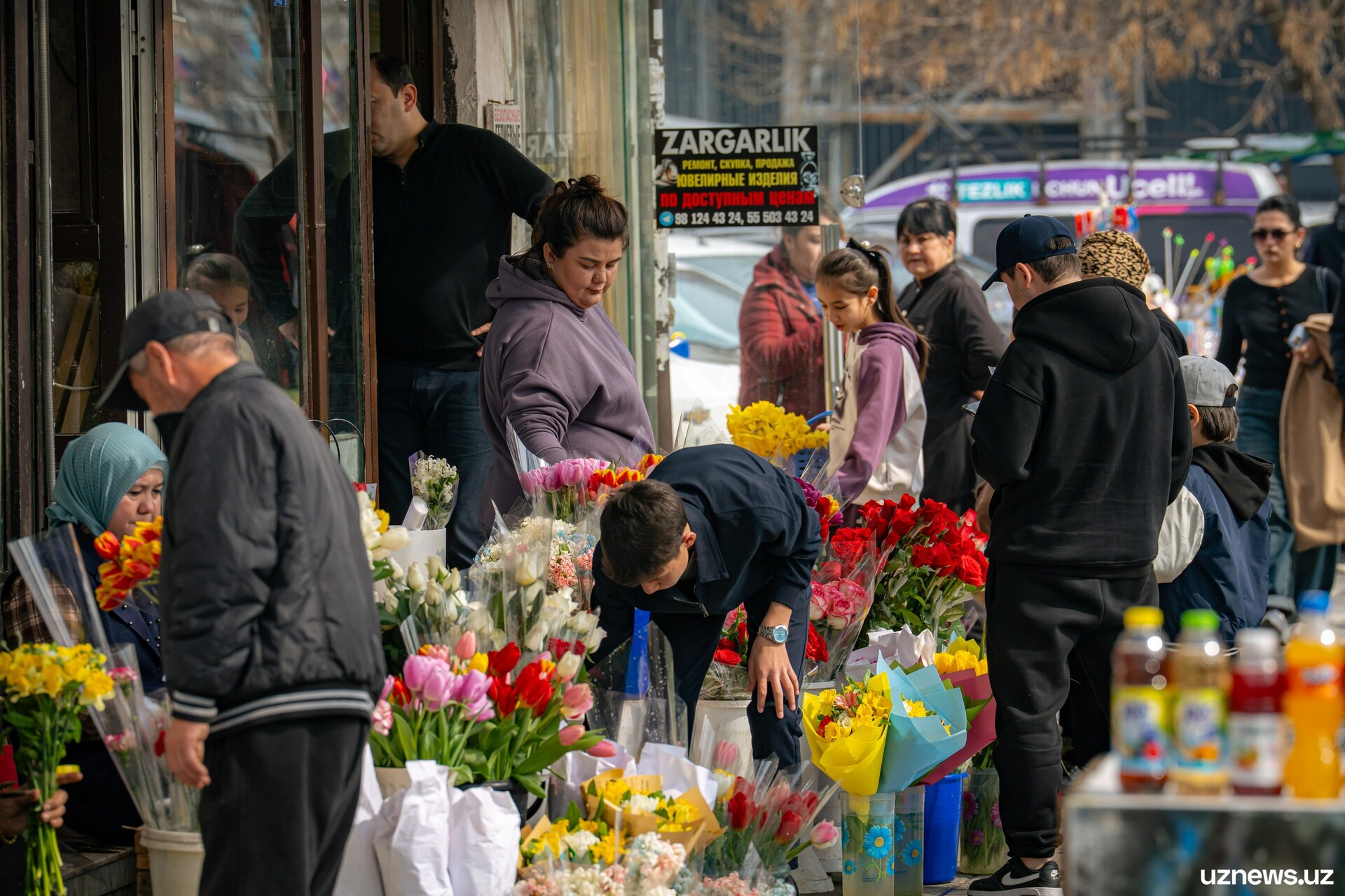 8 марта у цветочных прилавков города было максимально оживлённо. Мужчины покупали букеты тюльпанов, роз и других весенних цветов для мам, жён, сестёр и коллег. Моменты праздничного дня запечатлел фотокорреспондент UzNews Георгий Намазов.