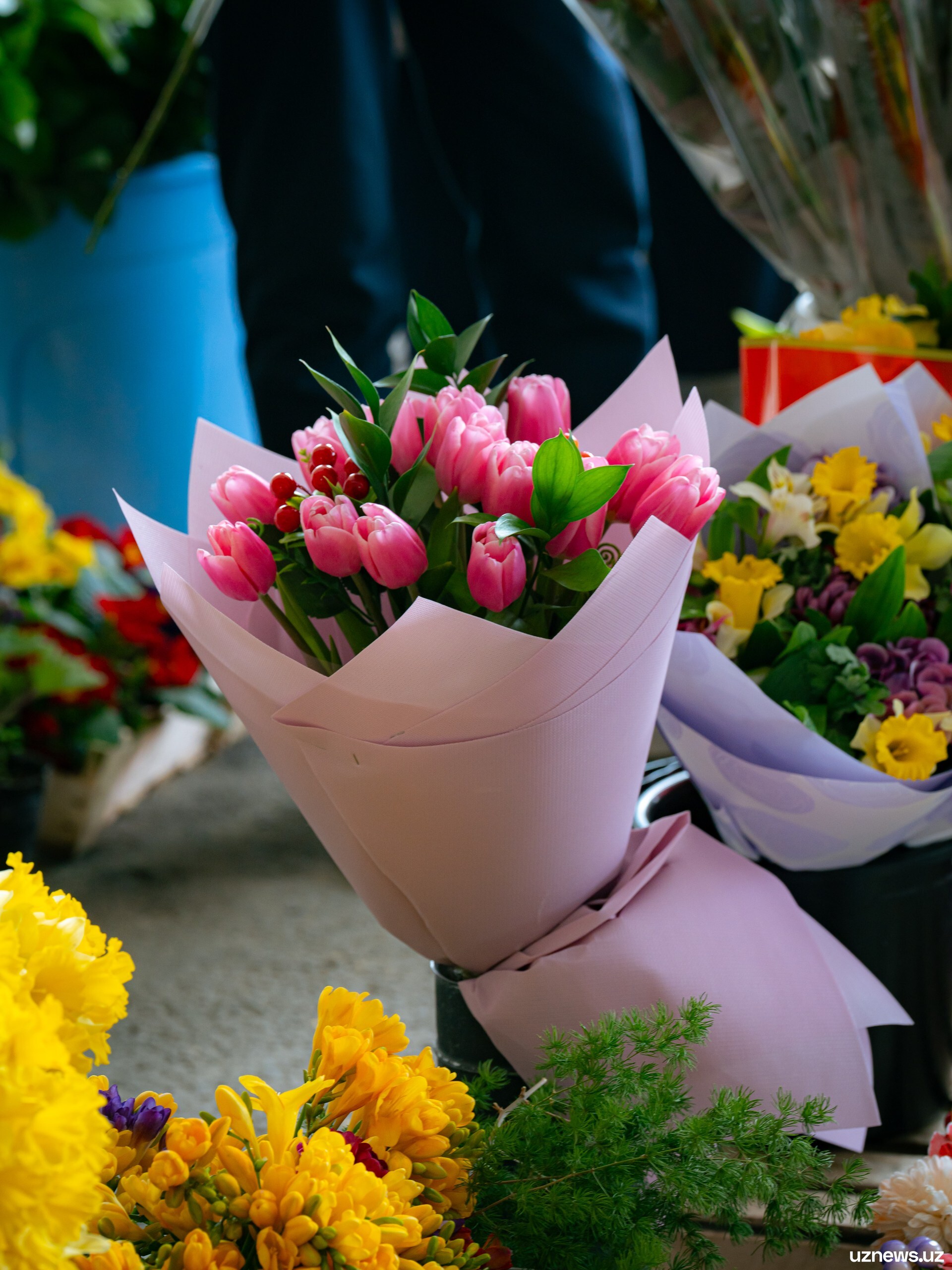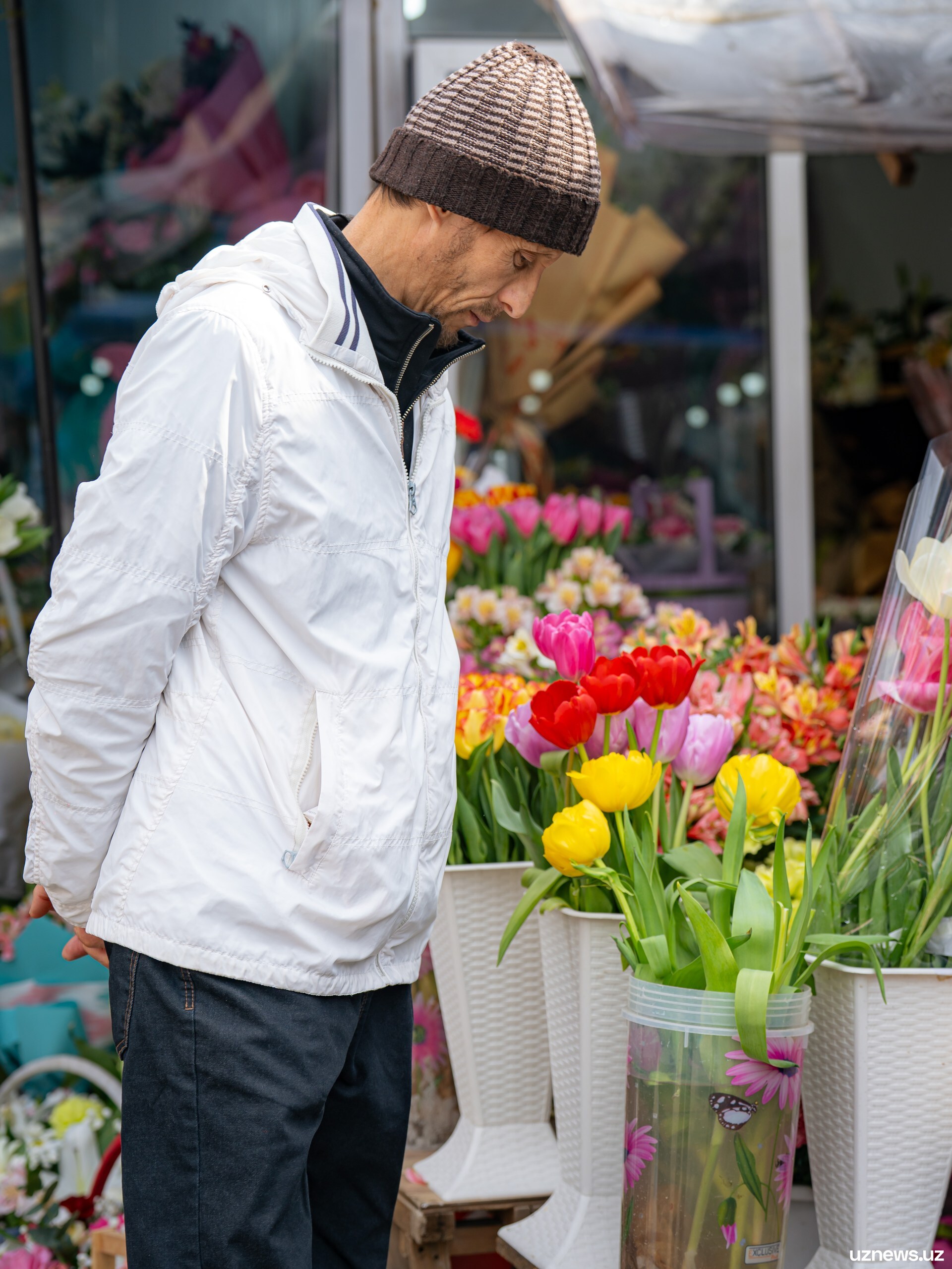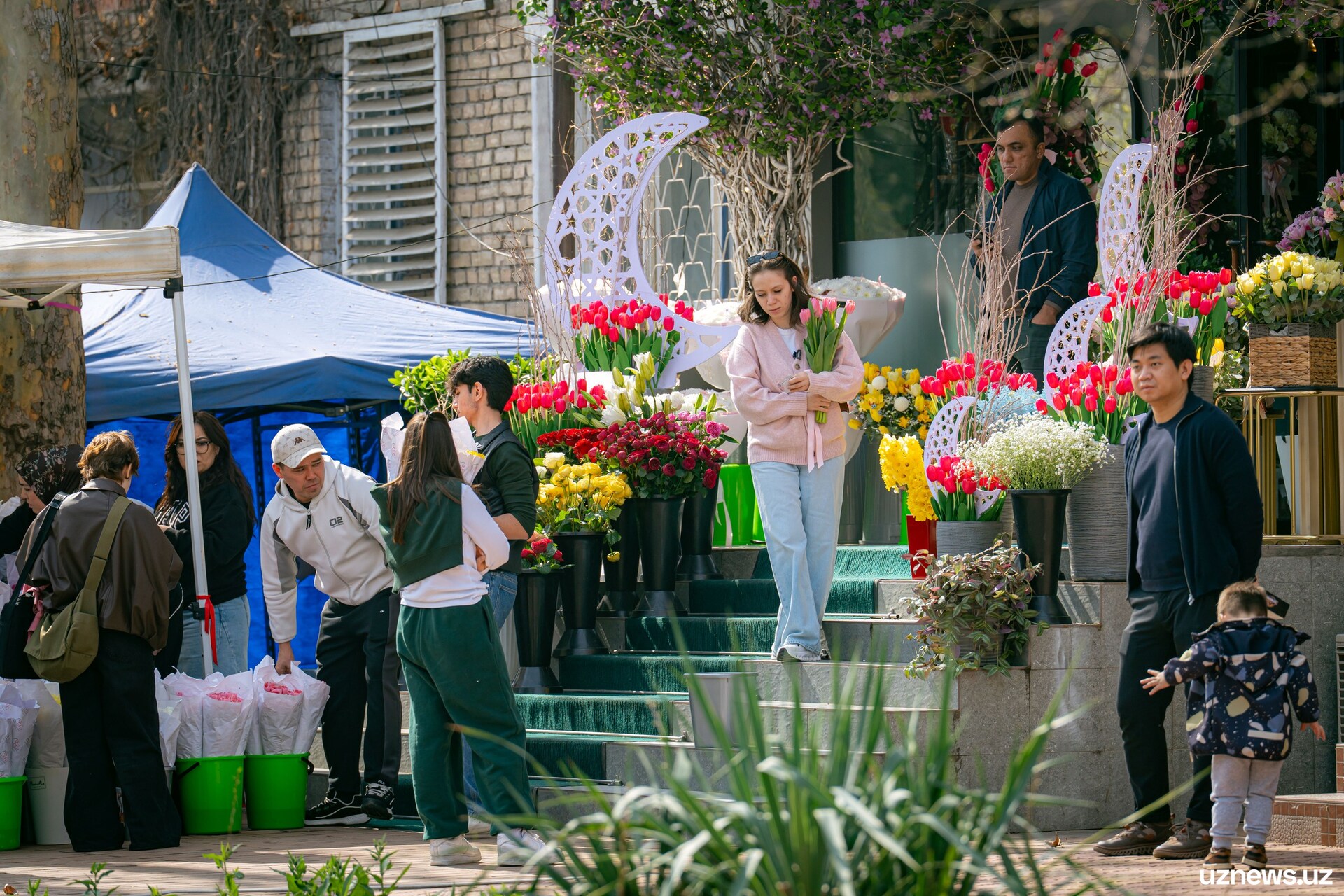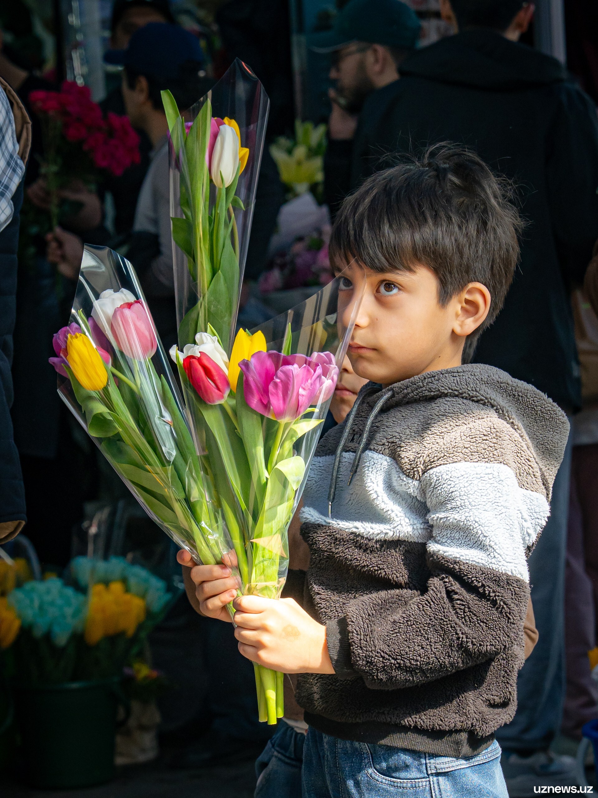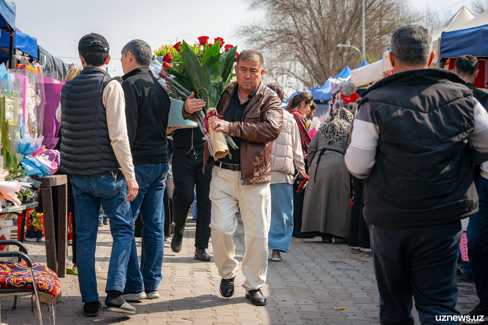 8 марта у цветочных прилавков города было максимально оживлённо. Мужчины покупали букеты тюльпанов, роз и других весенних цветов для мам, жён, сестёр и коллег. Моменты праздничного дня запечатлел фотокорреспондент UzNews Георгий Намазов.