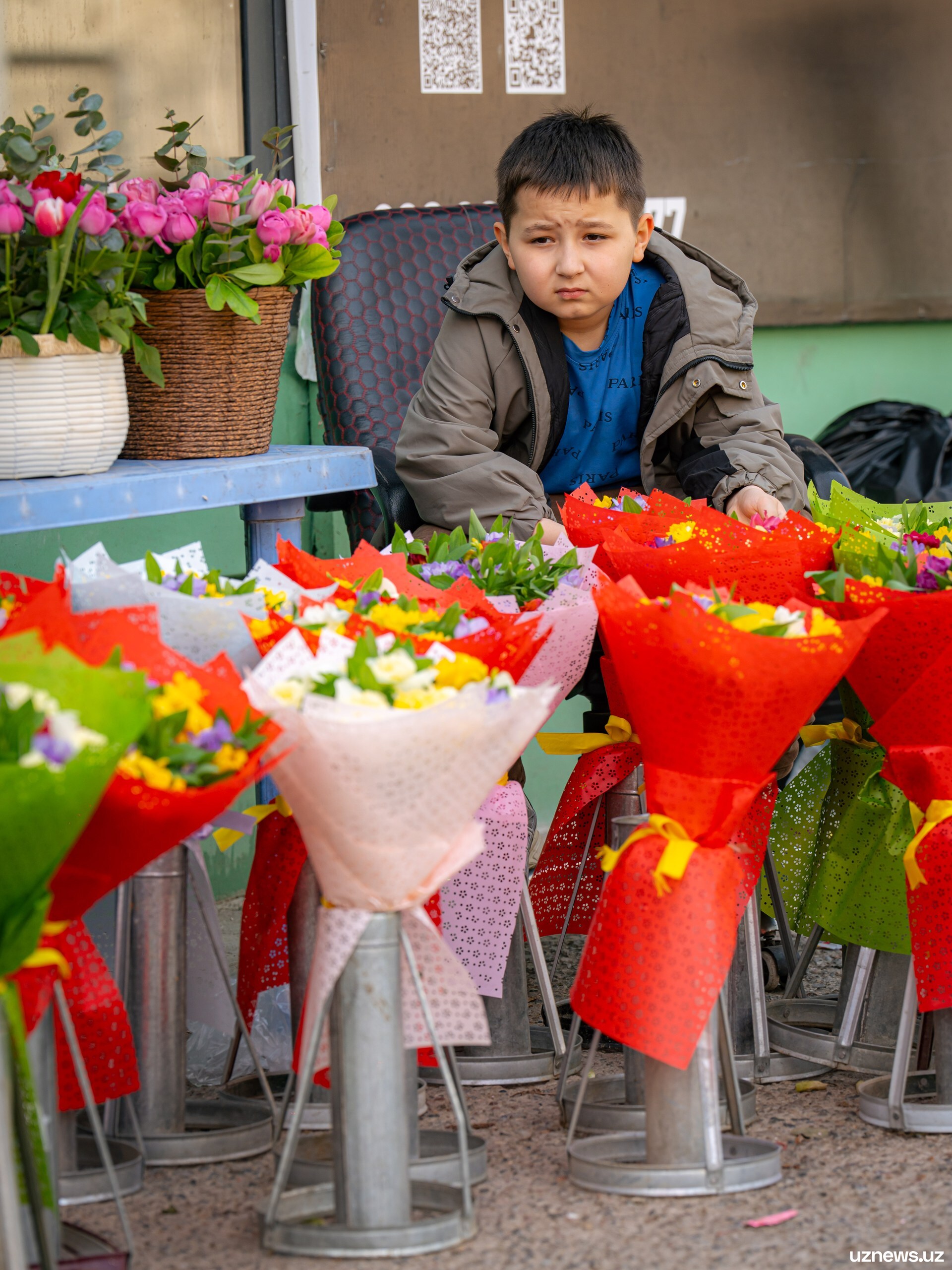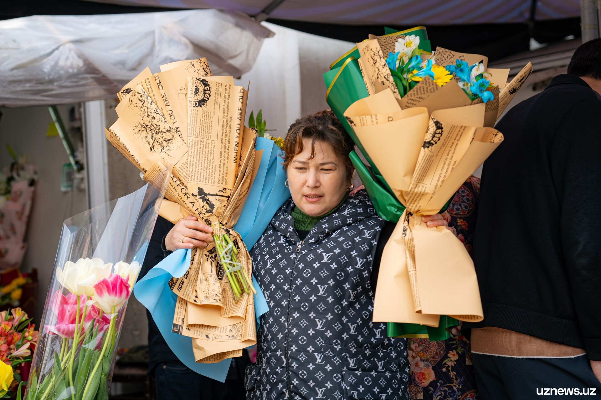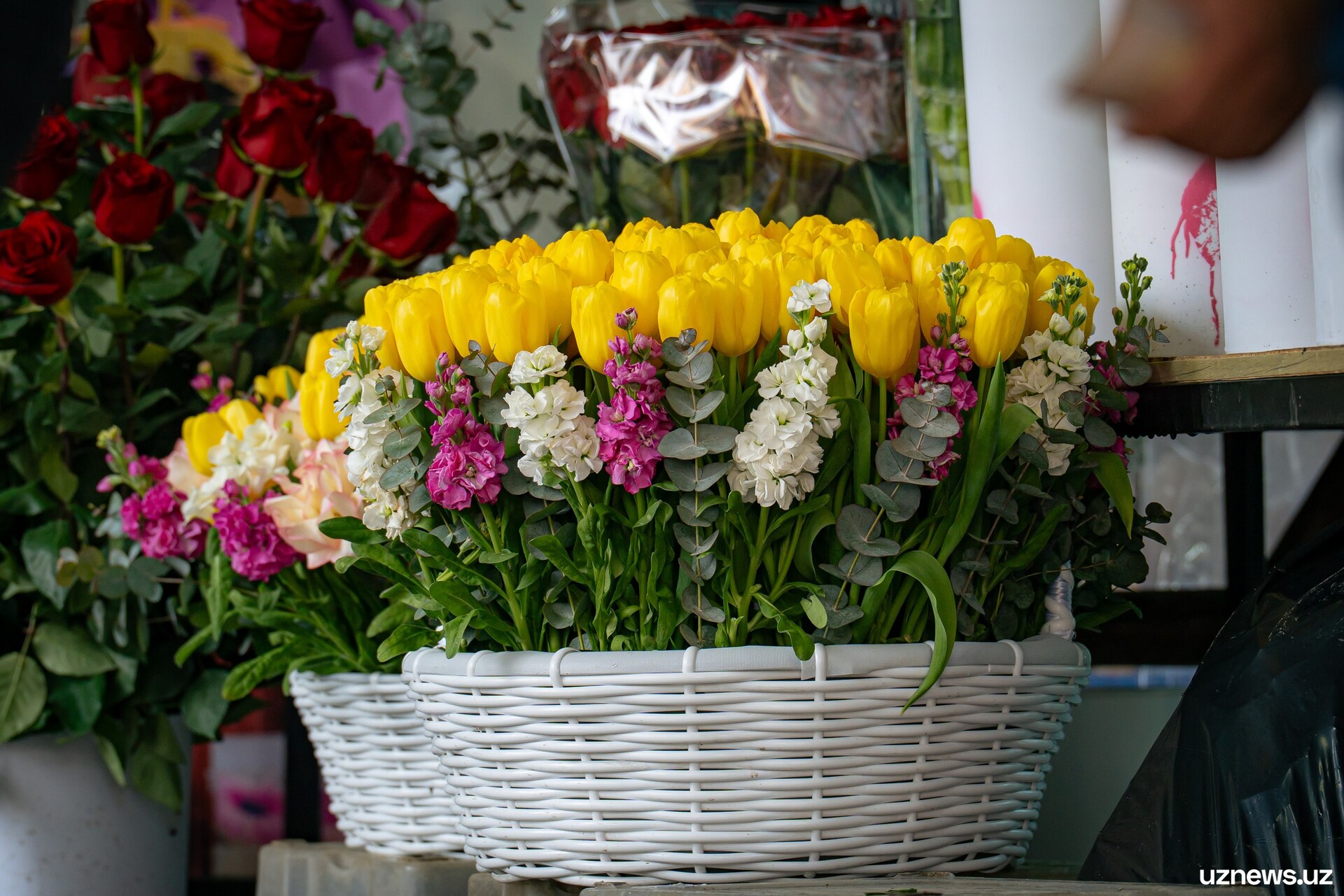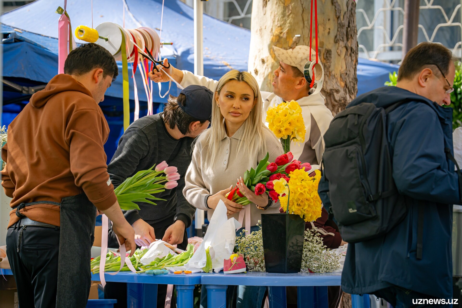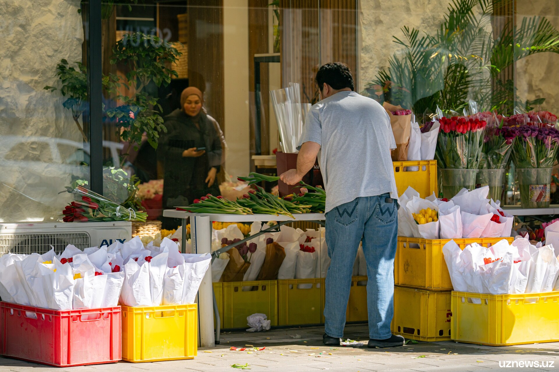 8 марта у цветочных прилавков города было максимально оживлённо. Мужчины покупали букеты тюльпанов, роз и других весенних цветов для мам, жён, сестёр и коллег. Моменты праздничного дня запечатлел фотокорреспондент UzNews Георгий Намазов.